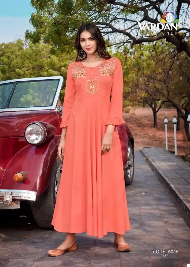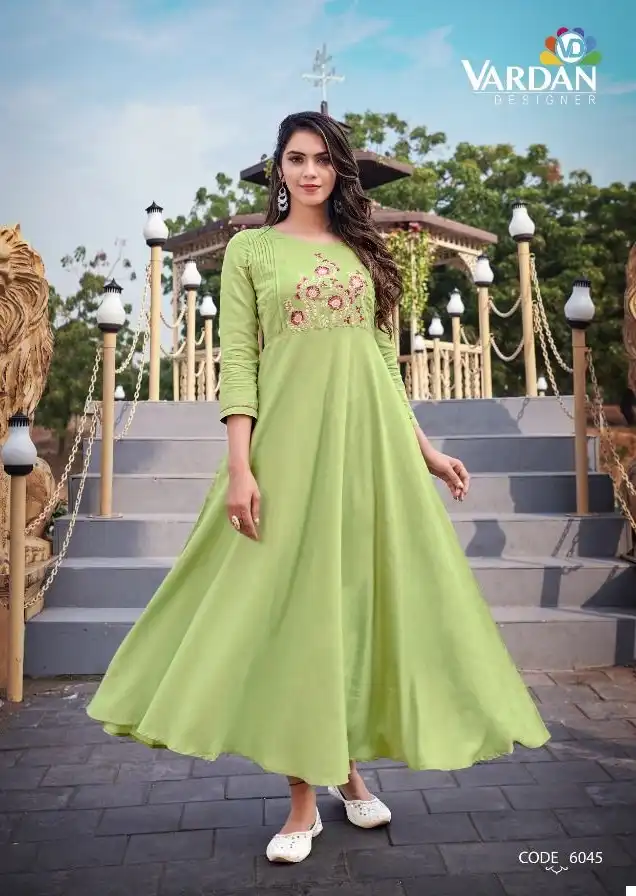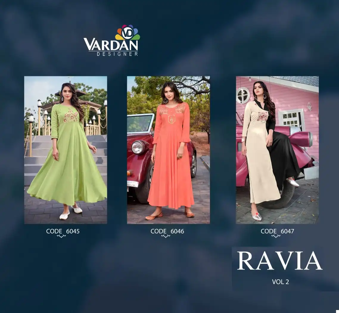 Vardan Designer Ravia Vol 2 14Kg Heavy Rayon Wholesale Long Kurti Catalog