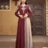 Vardan Designer Sara Vol-1 Heavy Muslin Wholesale Gown Catalog of 4 Pcs. We deal in Kurtis, Sarees, Dresses Materials, Leggings, and Designer Salwar Kameez.