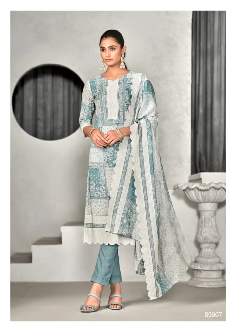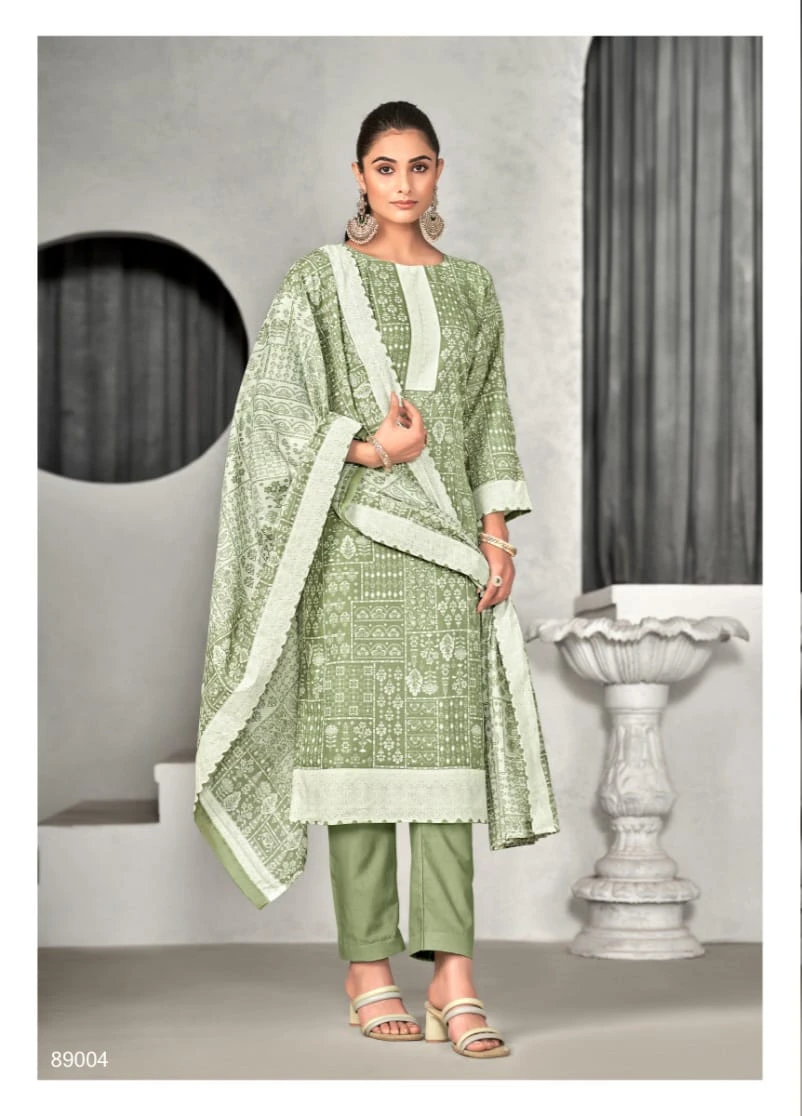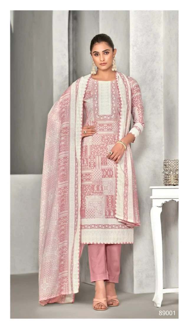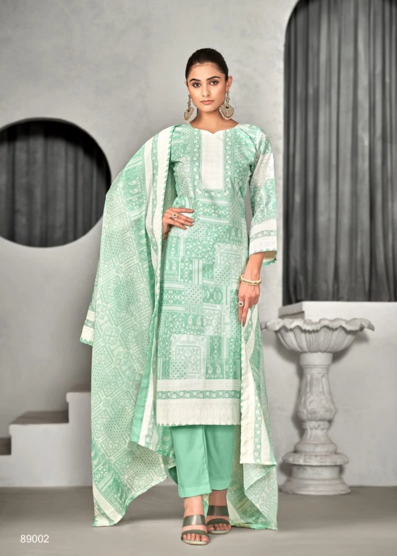 This set, priced at ₹435 per piece, includes a pure cotton top and bottom, both 2.50 meters, and a pure mal cotton digital print dupatta measuring 2.25 meters. The complete set of 8 pieces is ideal for casual wear, summer days, and festive gatherings, offering comfort, style, and ample fabric for a tailored fit.