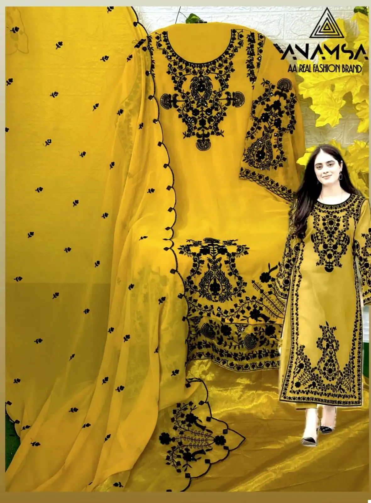 - Dupatta: Complete your look with the Pure Georgette Dupatta featuring fancy embroidery. The intricate detailing and delicate embellishments add a touch of sophistication to the ensemble, making it perfect for adding a hint of glamour to any occasion.