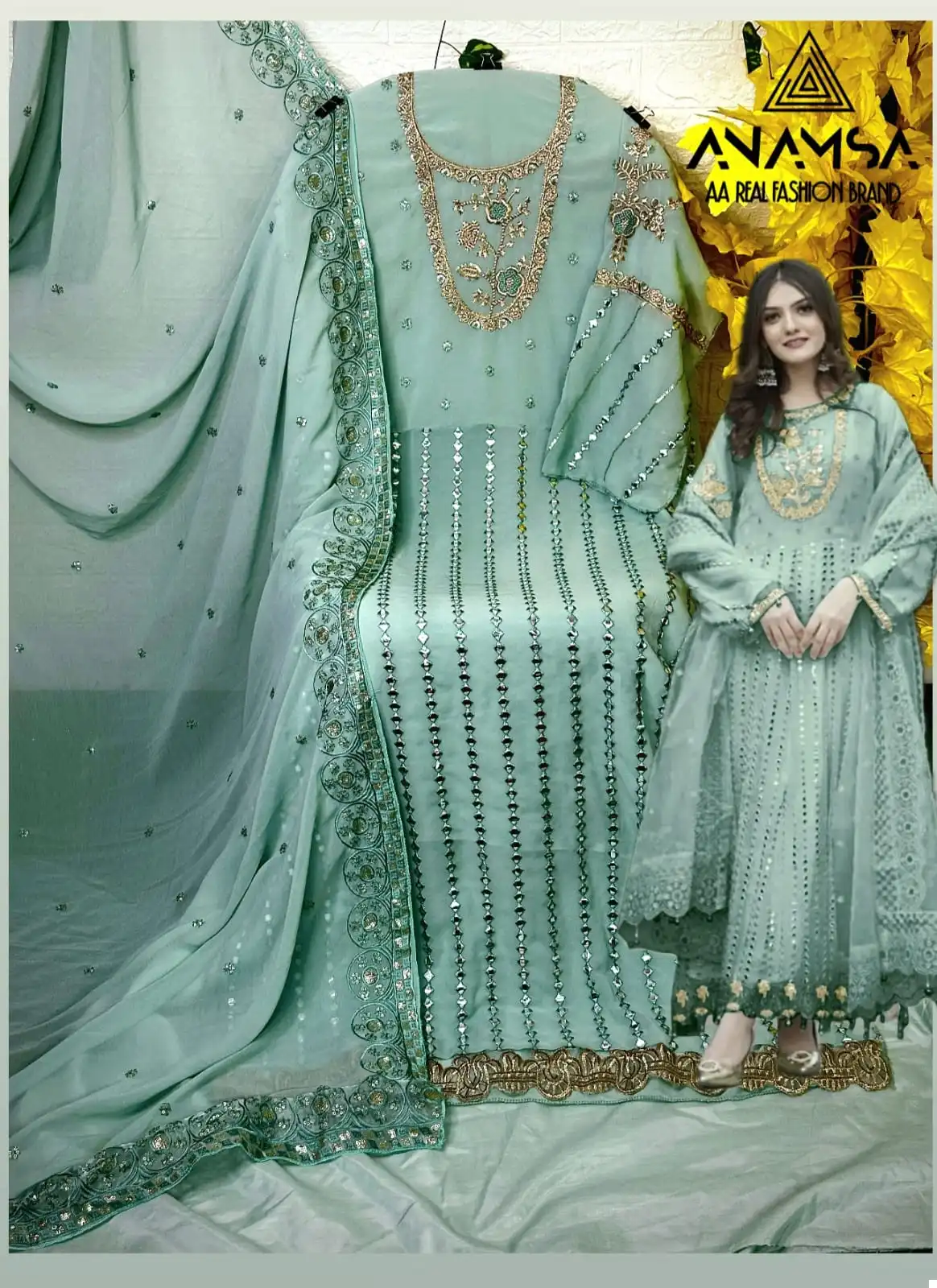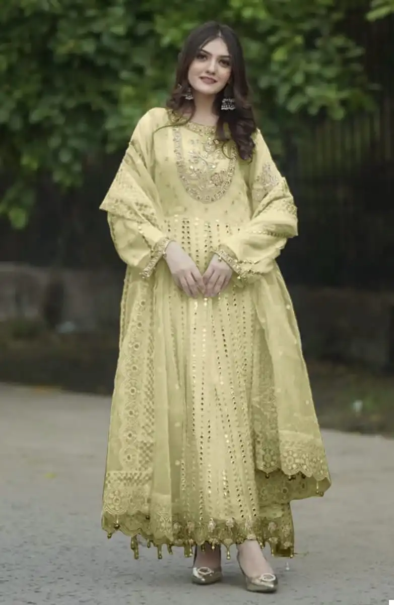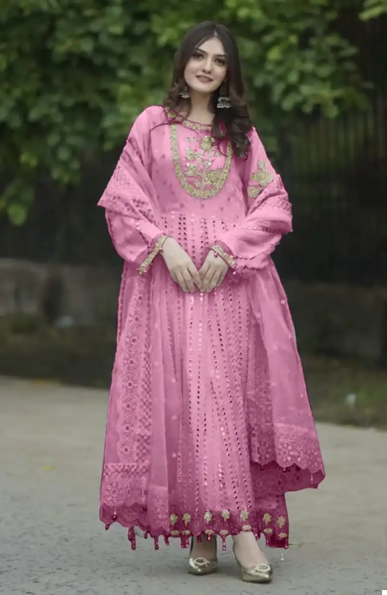 - Dupatta: Complete your ensemble with the fancy Dupatta crafted from pure Faux Georgette. Adorned with fancy embroidery, the Dupatta adds a touch of sophistication and elegance to your look, elevating your overall style.
