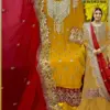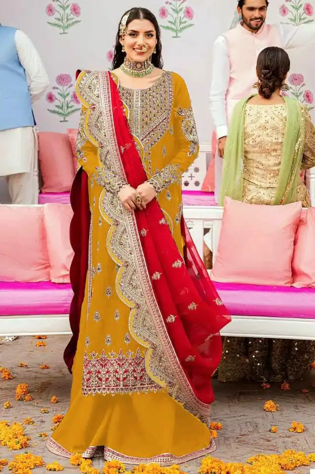 - Description: Heavy Embroidered Very Beautiful Design And Sequence Work. The top features intricate embroidery and sequence work, adding embellishments and visual interest.