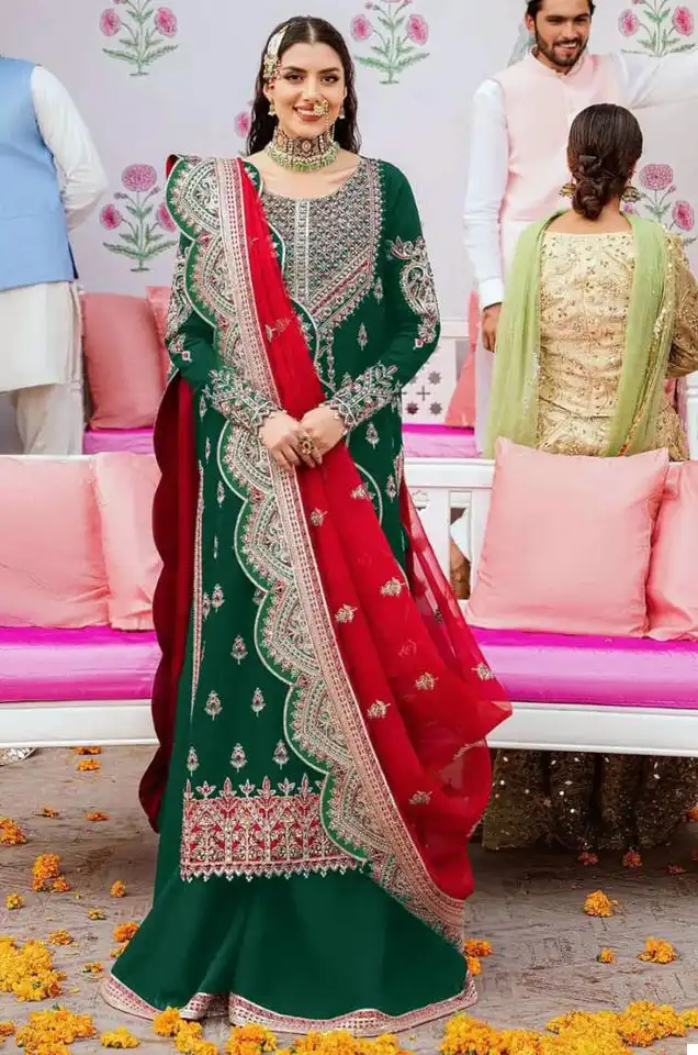 Heavy Pure Faux Georgette with Heavy Embroidered Very Beautiful Design and Sequence Work High Quality Material |
