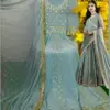 - Embellishments: The top features heavy embroidery and sequence work, adding intricate detailing and elegance to the design.