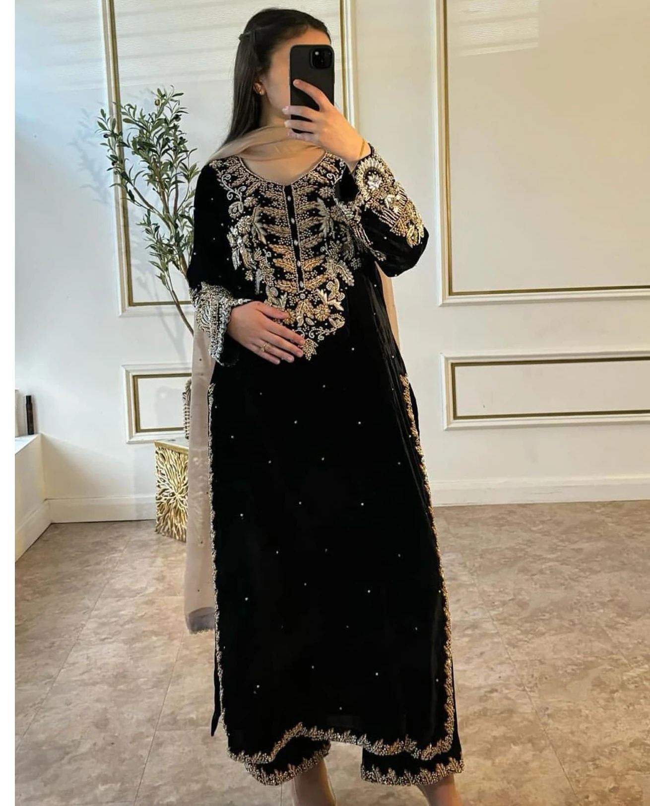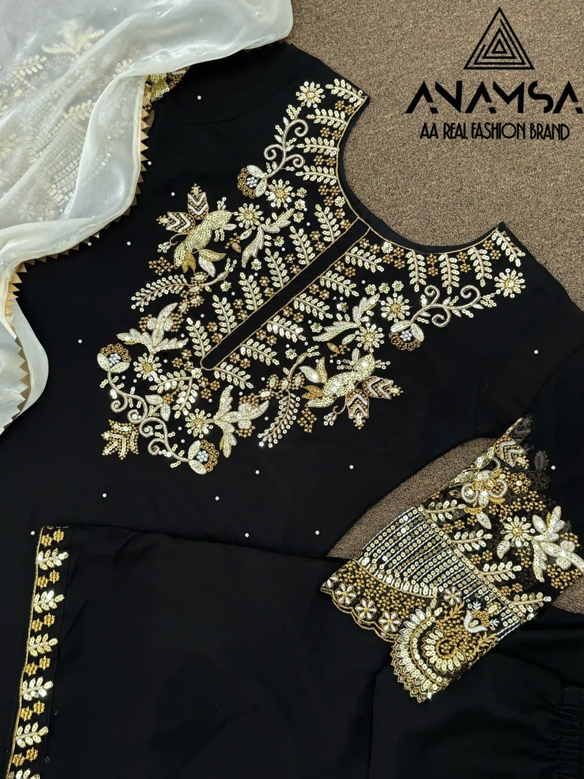 Heavy Pure Fox Georgette With Heavy Embroidered Very Beautiful Design And Sequence Work And Moti Work