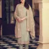 - Dupatta: Complete your ensemble with the Dupatta crafted from Chinon & Georgette, featuring heavy embroidery work that adds sophistication to your attire. The luxurious fabric drapes gracefully, adding an element of grandeur to your look.