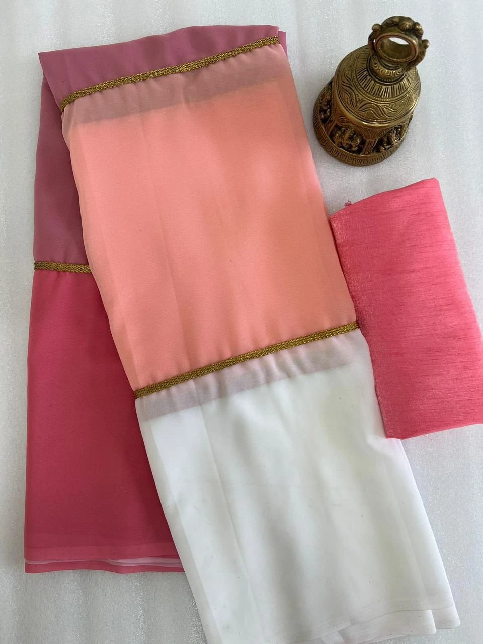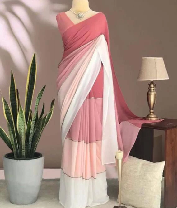 This stylish saree features a soft georgette fabric with a fancy line lace and a vibrant digital print. The accompanying blouse is made from soft satin silk, providing a luxurious feel. Available in four different colors, this saree offers both elegance and comfort.