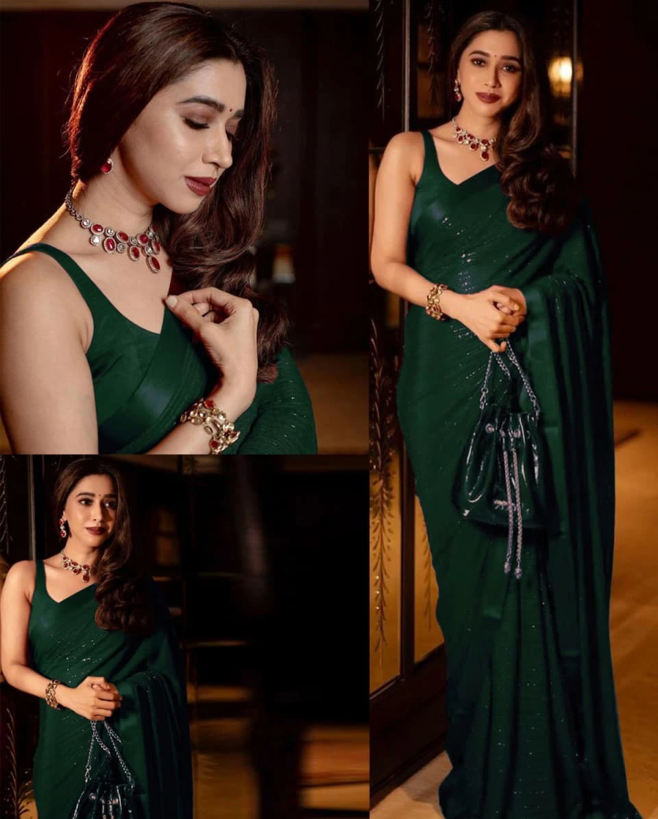 - Saree: Heavy Georgette with Fancy Thread and Sequin Work, 5.50 meters