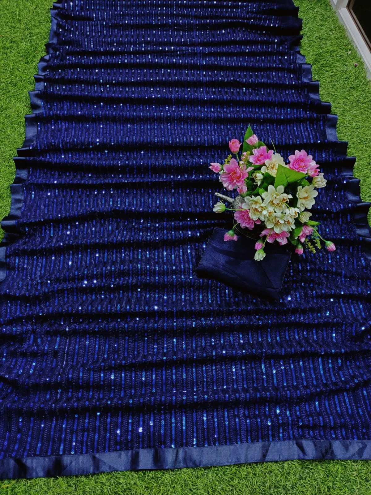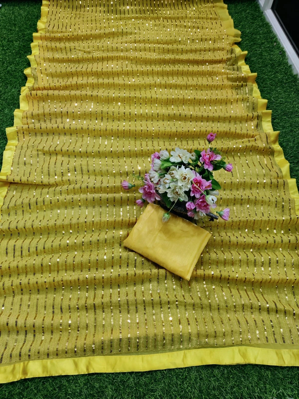 Heavy Georgette Fancy Thread with Sequence Work 5.50Mtr |