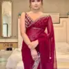 - Saree: Made from premium georgette fabric, the saree boasts a captivating C-pallu design adorned with exquisite embroidery, sequin work, and hand stone embellishments. The intricate detailing adds a luxurious touch, making it perfect for weddings, parties, and festive occasions.