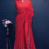 - The saree is crafted from Soft Georgette fabric, known for its softness and drape. It features intricate Fancy Beautiful 7 Mm Embroidery, Heavy Sequence and Thread Work, along with Lace detailing, enhancing its elegance.