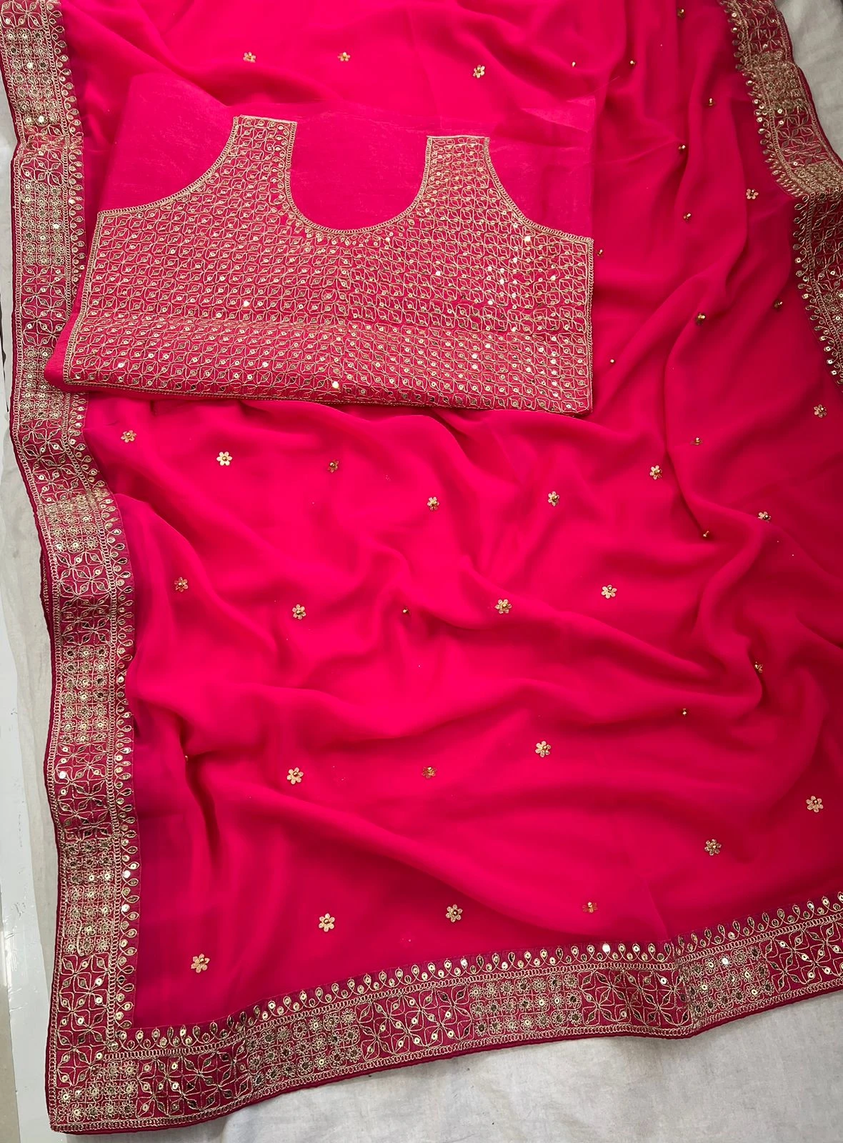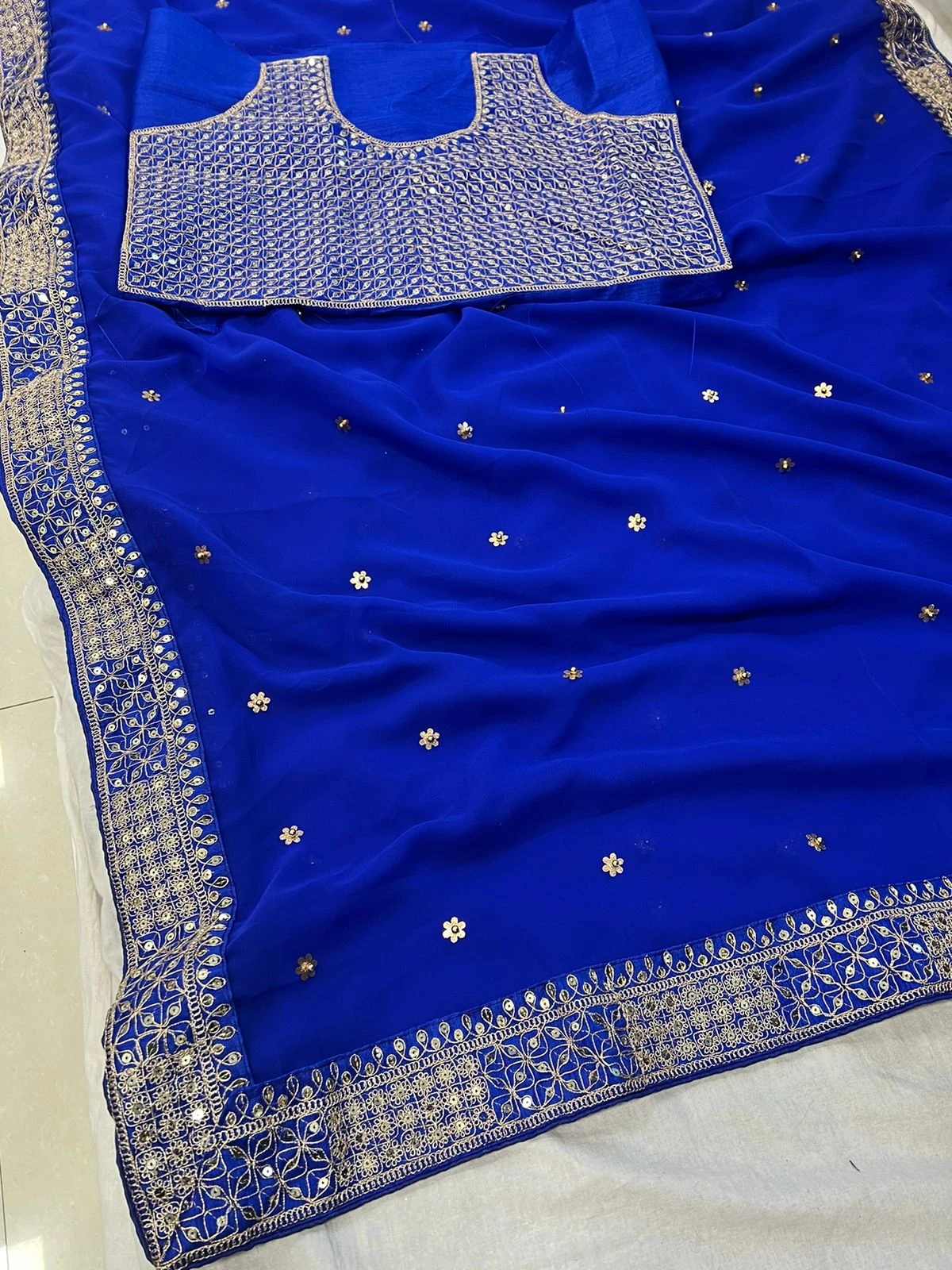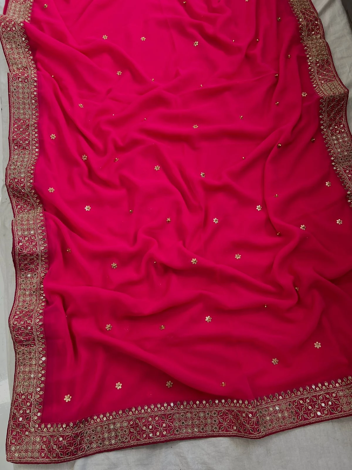 - Saree: Heavy Georgette Fancy Dori Thread & Sequence With Handcrafted Butti & Moti Work, 5.50 Meters