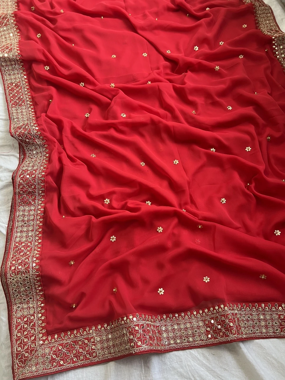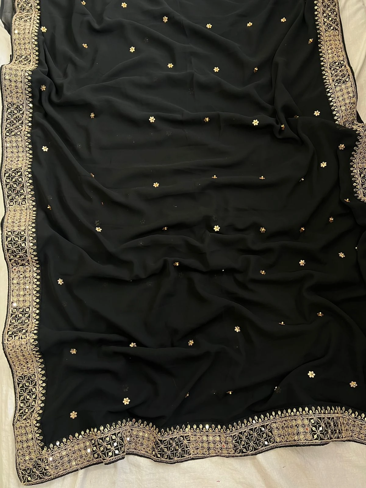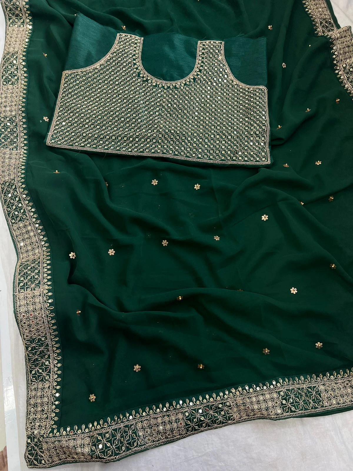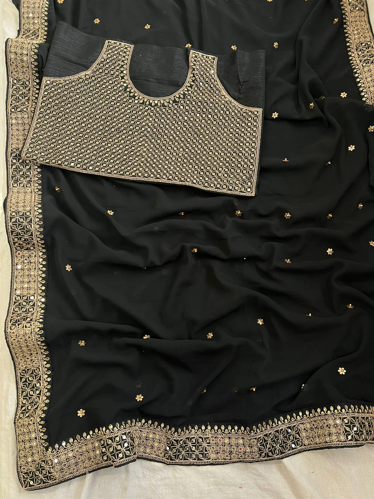 - Saree: Heavy Georgette Fancy Dori Thread & Sequence With Handcrafted Butti & Moti Work, 5.50 Meters