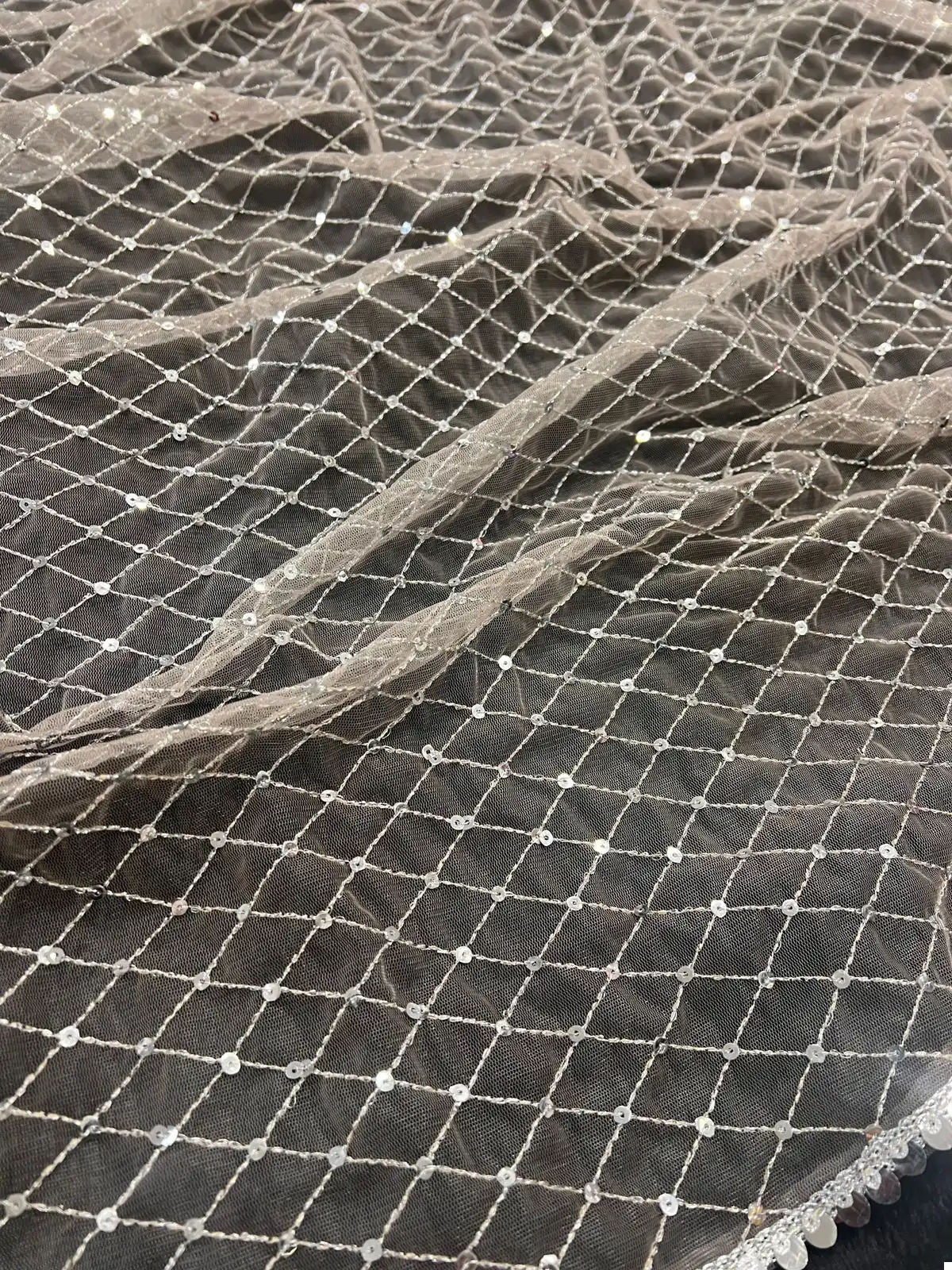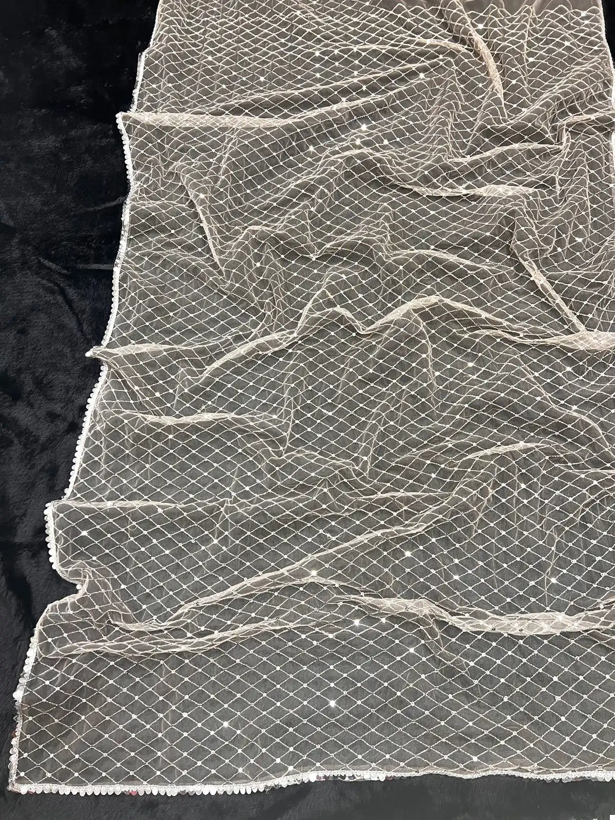 Heavy Nylone Butterfly Net Fancy Multy & Sequence Work with Sequence Attached Lace Border 5.50M |