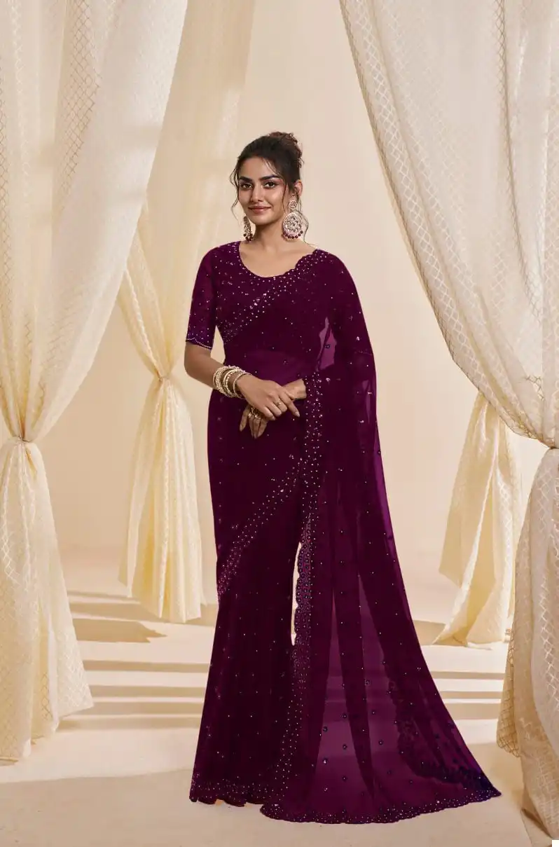Georgette Fabric with Sequence Zari Embroidery Saree |