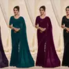 - Description: The saree features sequence and zari embroidery work, adding intricate detailing and elegance to the fabric.