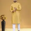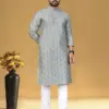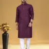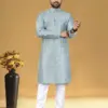 The kurta and pajama are made from a luxurious pure silk blend fabric that provides a soft and smooth feel against the skin. This fabric is known for its sheen and drape, adding a touch of opulence to your attire.
