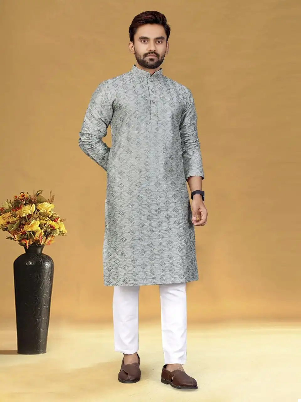 This Pure Silk Blend Kurta and Pajama set is versatile and can be worn for various occasions, including weddings, festivals, and special gatherings. Its rich fabric and intricate embroidery make it a standout choice.