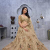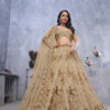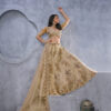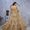 Featuring Goldencolor exquisite peacock and bagh embroidery lehenga with Sequin, stone work and sitara embellishments which is complemented by scalloped hems and borders. The embroidered net dupatta, a matching embroidered blouse.Complement this majestic outfit with strappy golden heels and elegant polki jewelry for a truly regal appearance.