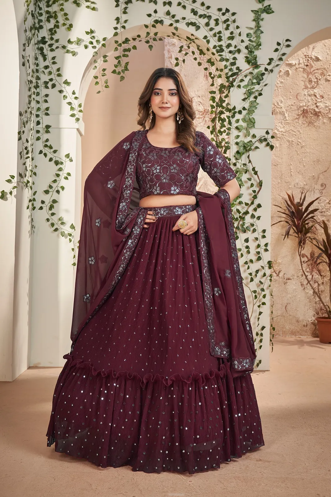 | Lehenga | Faux Georgette Thread & Sequins Embroidery Work |