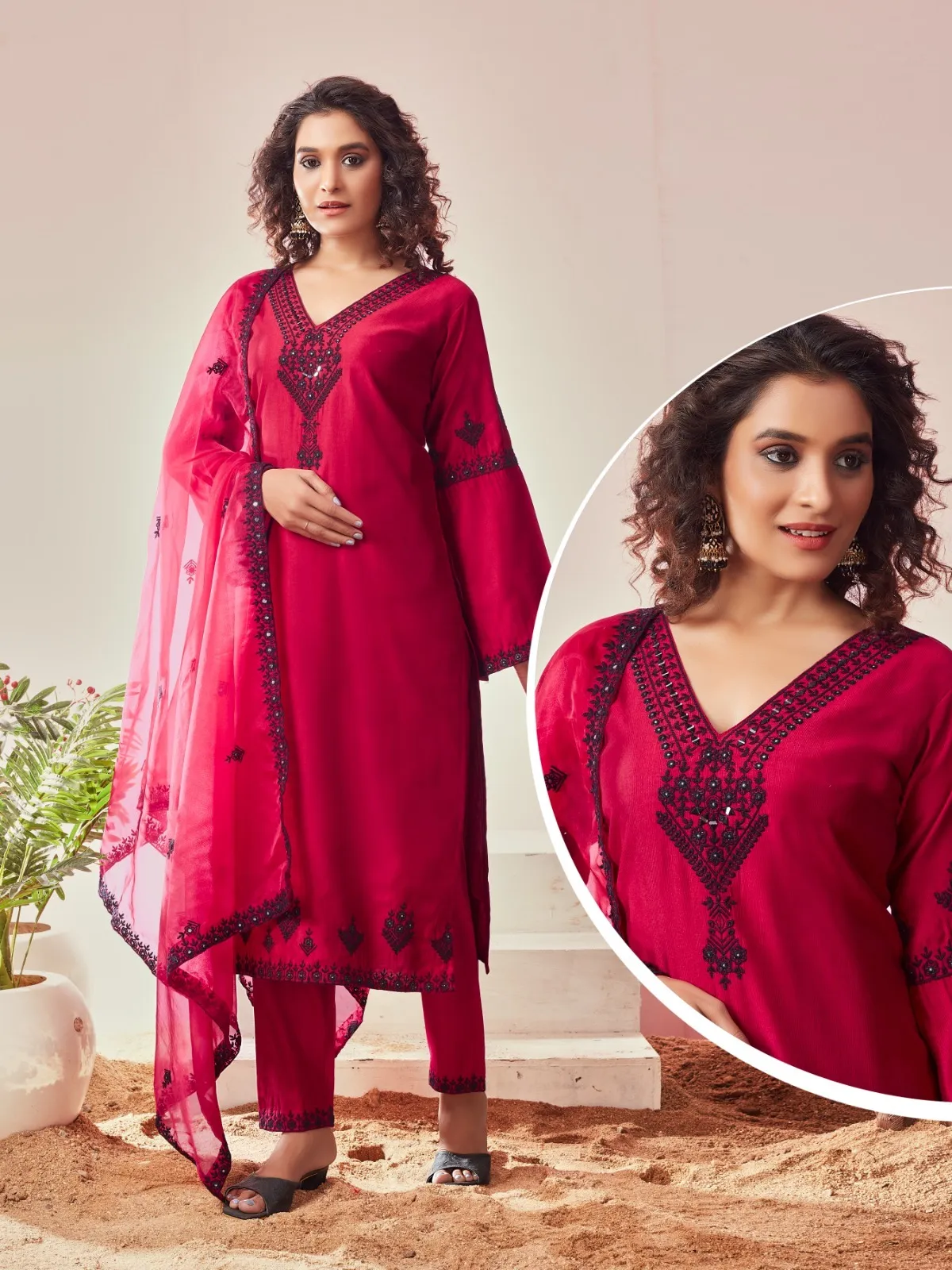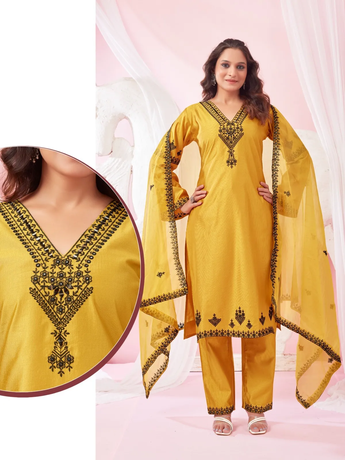 | Dupatta | Organza with embroidery work |