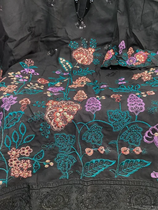 Top Fabric: Heavy Rayon with Heavy Embroidery Work + Sequence Work + Moti Work + Organza Foot Hill Work + Full Neck Moti Work