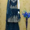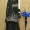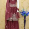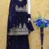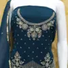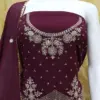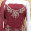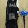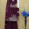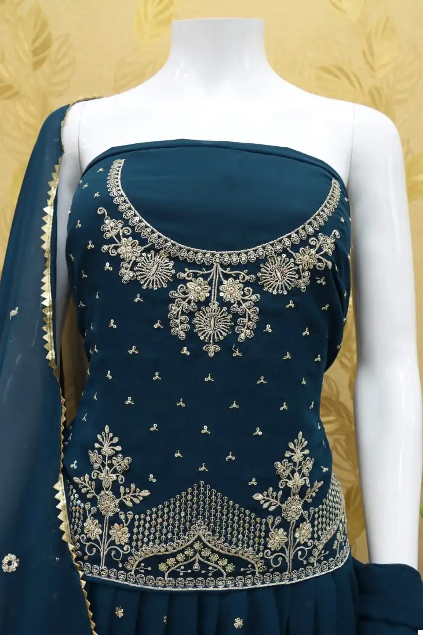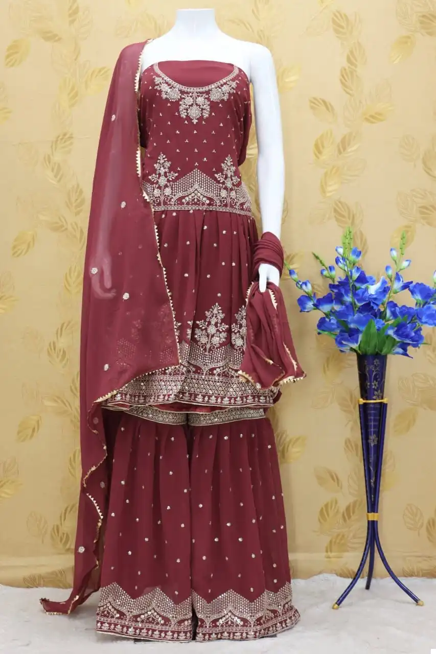 - Bottom: Coordinating heavy faux georgette bottoms with similar embroidery and sequin details, and an attached inner for added convenience and comfort.