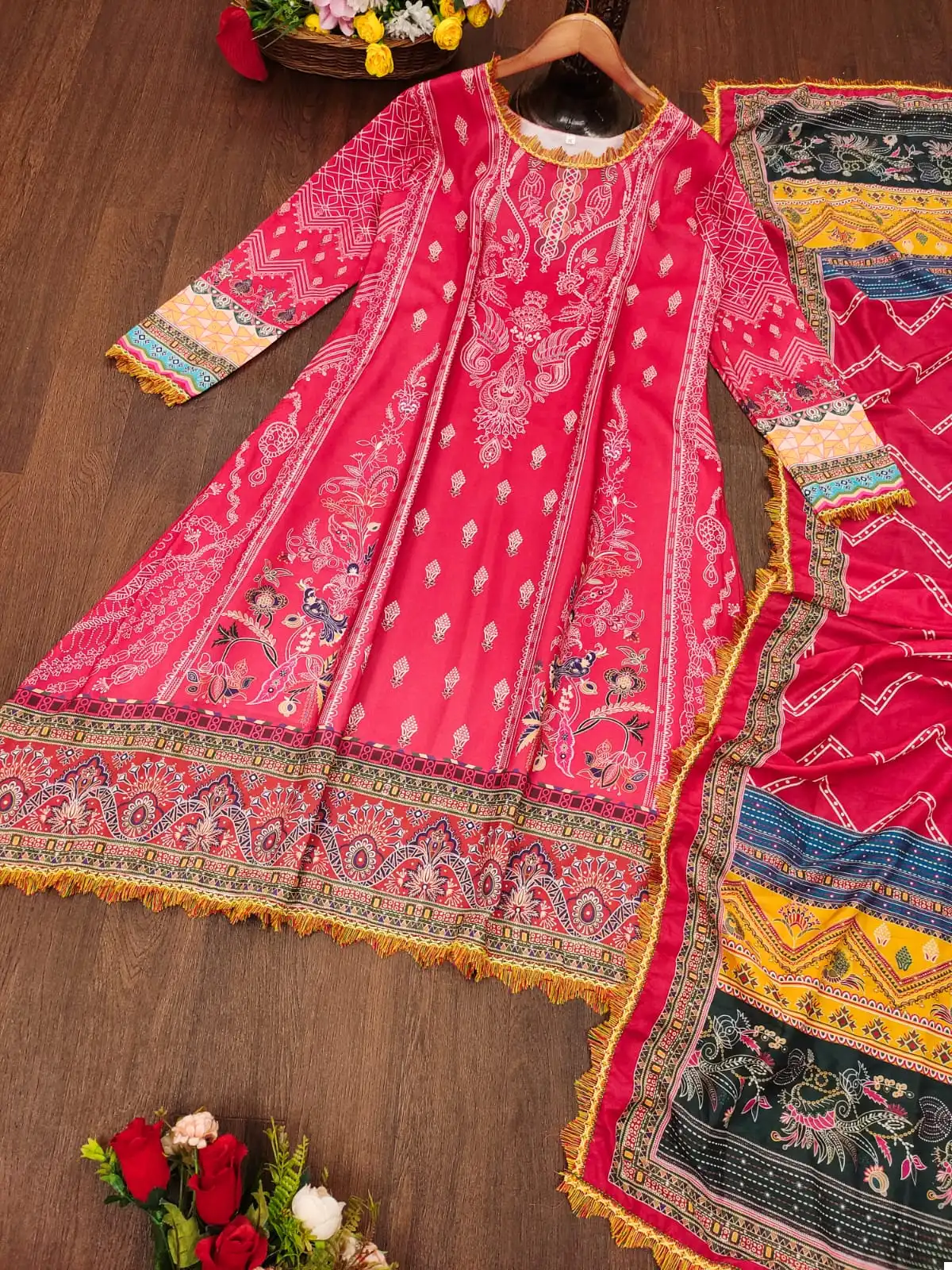 - Dupatta: The pure muslin dupatta features digital prints that harmonize with the top’s design, adding a touch of elegance to the ensemble.