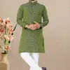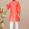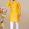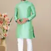 - Fabric: The kurta is crafted from jacquard fabric, known for its intricate woven patterns and rich texture. The jacquard weave adds depth and dimension to the fabric, creating a visually striking effect that sets this kurta apart.