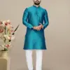 - Fabric: The kurta is crafted from jacquard fabric, known for its intricate woven patterns and rich texture. The jacquard weave adds depth and dimension to the fabric, creating a visually striking effect that sets this kurta apart.