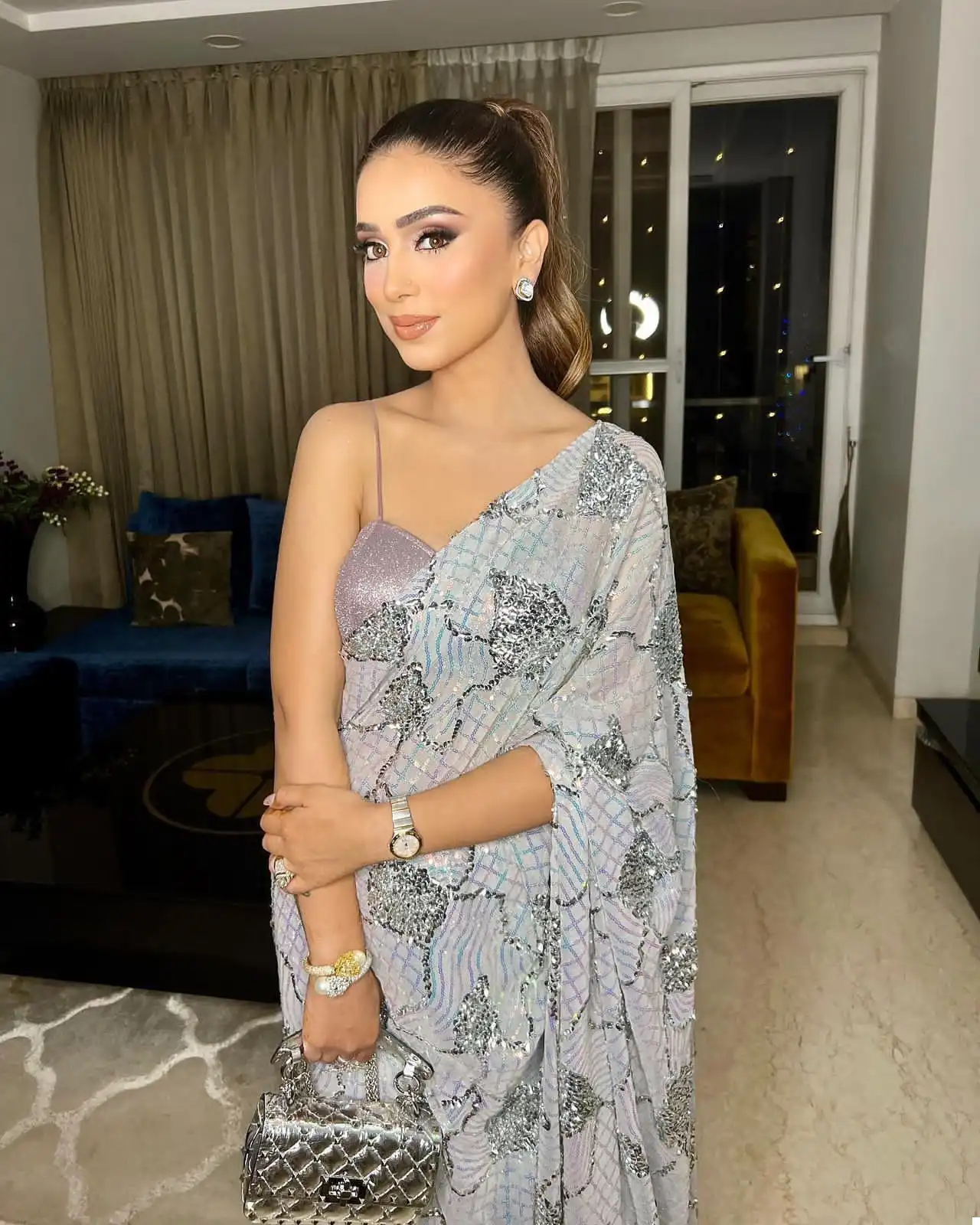 - Blouse: Imported Glitter Silk Work