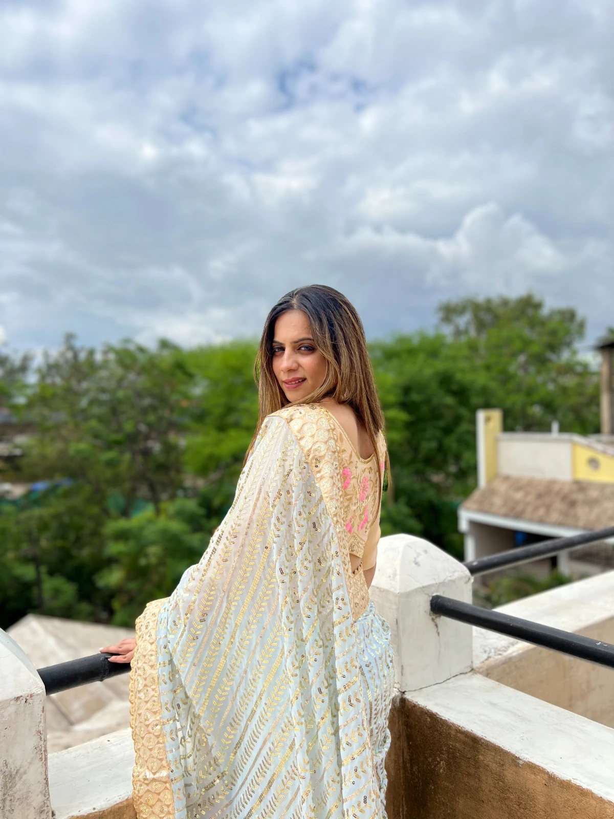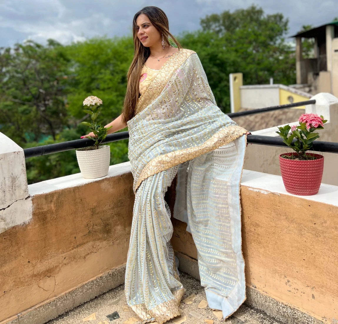 - Elegance: The saree’s intricate embroidery and sequence work add a touch of sophistication and glamour.