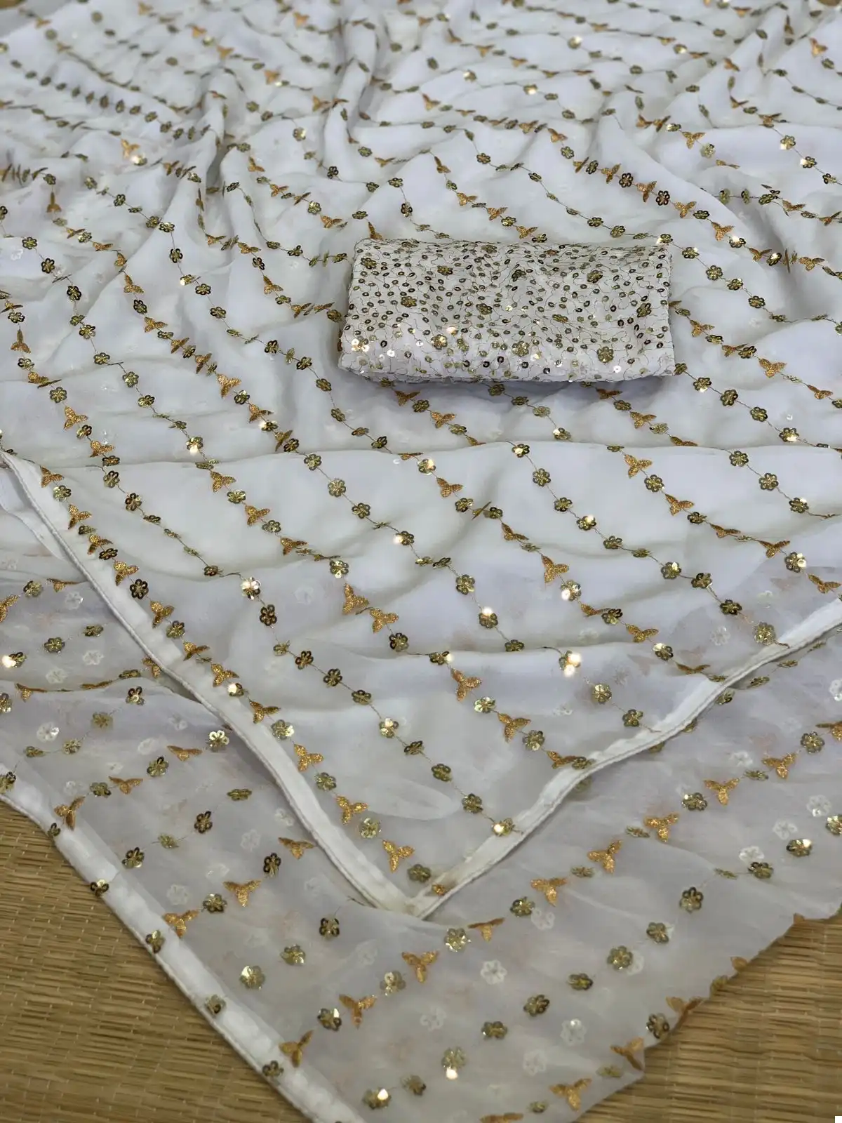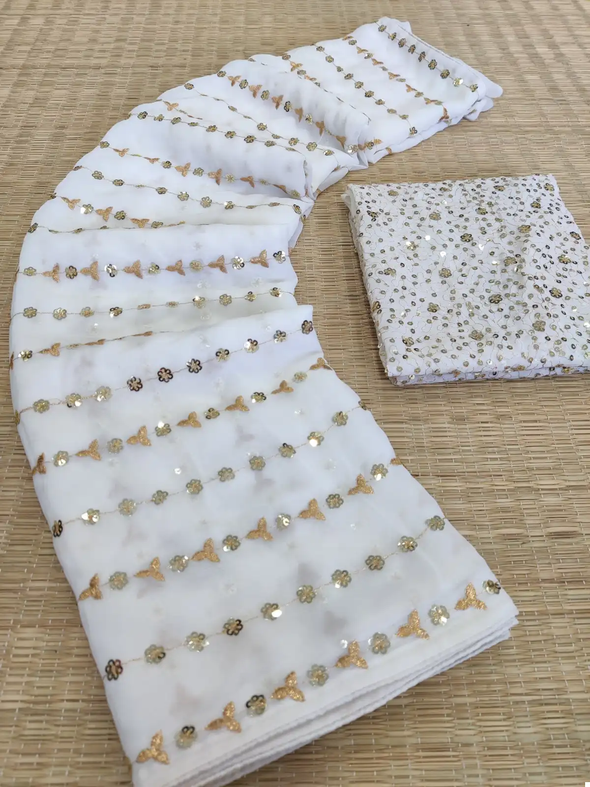 Faux Georgette Embroidery Sequence work & Piping 5.50 Mtr