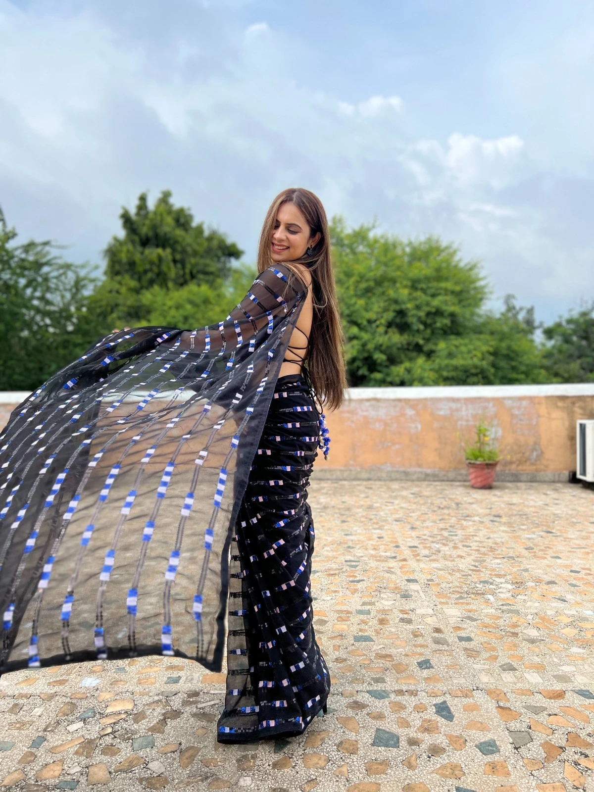 - Saree: Crafted from Georgette with intricate 5 mm sequin work, featuring a back patch support lace border with piping (Length: 5.50 Mtrs)