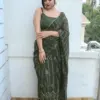 The intricate embroidery and sequence work on the saree add a touch of elegance and opulence. It’s perfect for making a statement at special events.