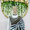 Blouse: The heavy mono silk blouse complements the saree beautifully with its luxurious texture and intricate embroidery work. The heavy embroidery on the blouse perfectly matches the saree, creating a cohesive and stylish ensemble that is sure to turn heads wherever you go.