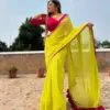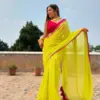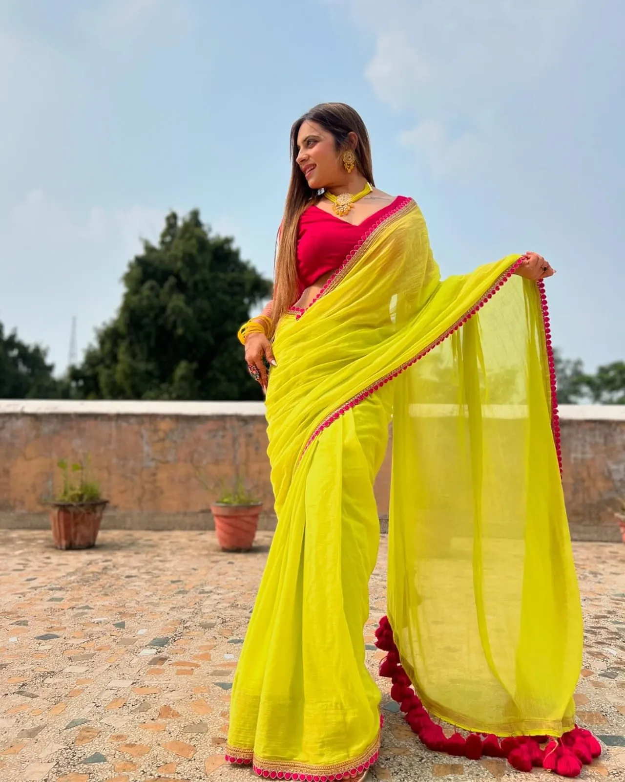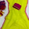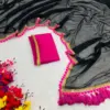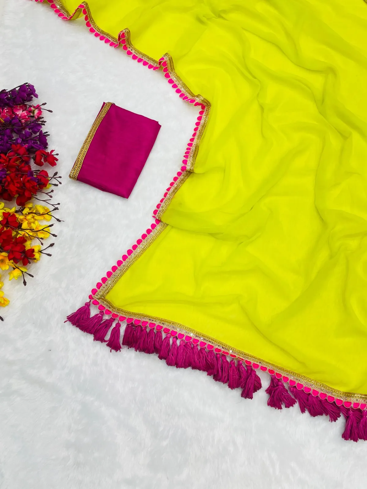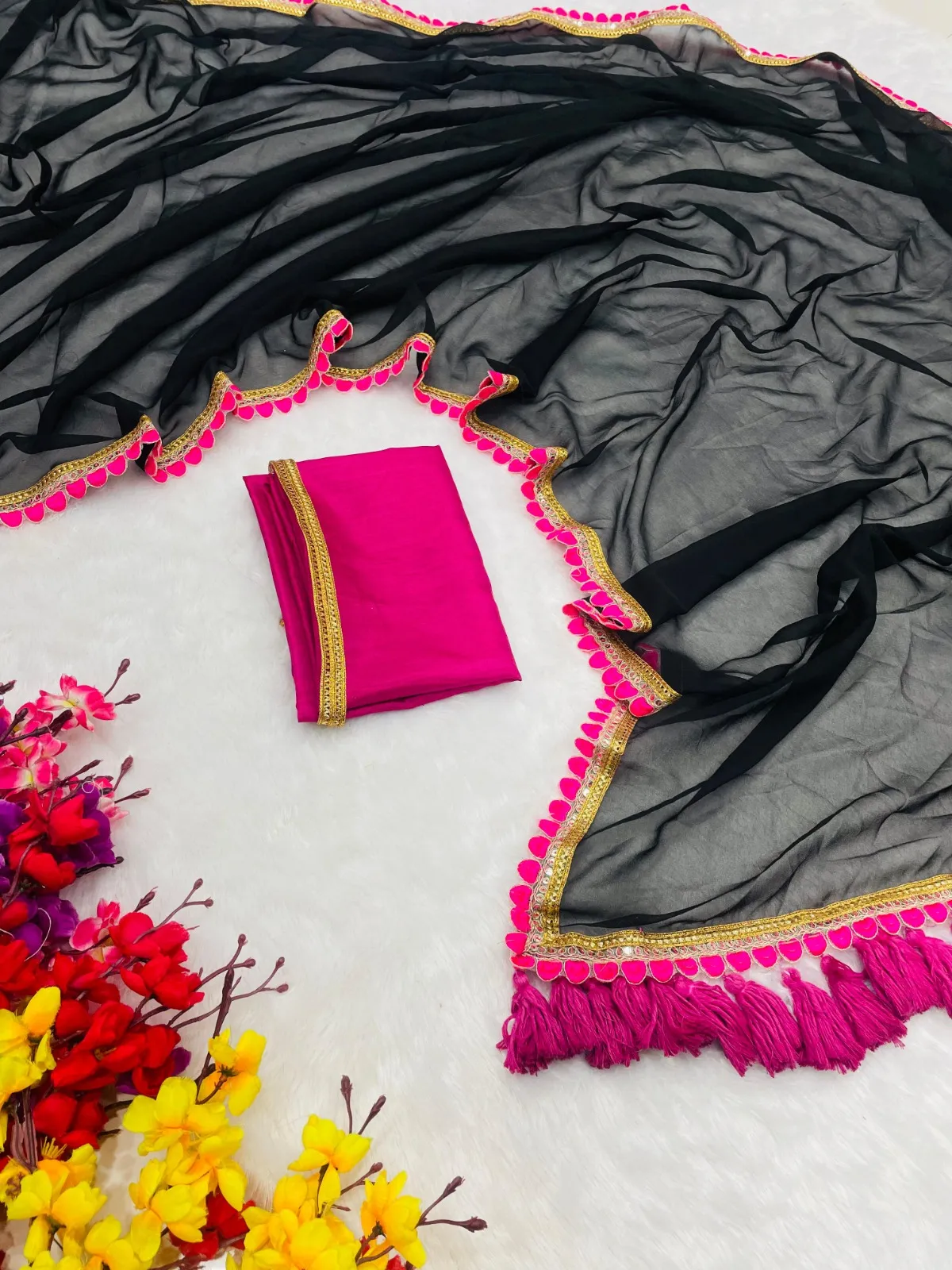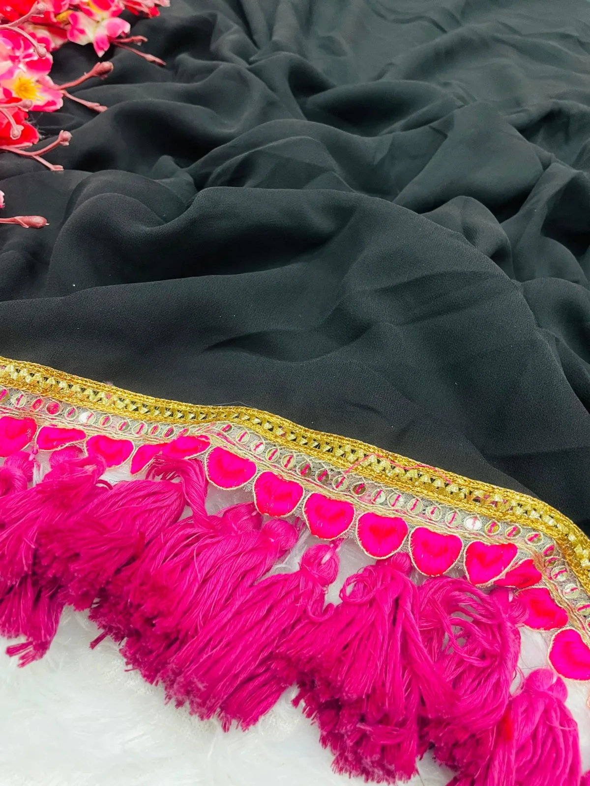 | Saree | Faux Georgette Multi Cording Sequence Lace & Big Pum Pum Lace |