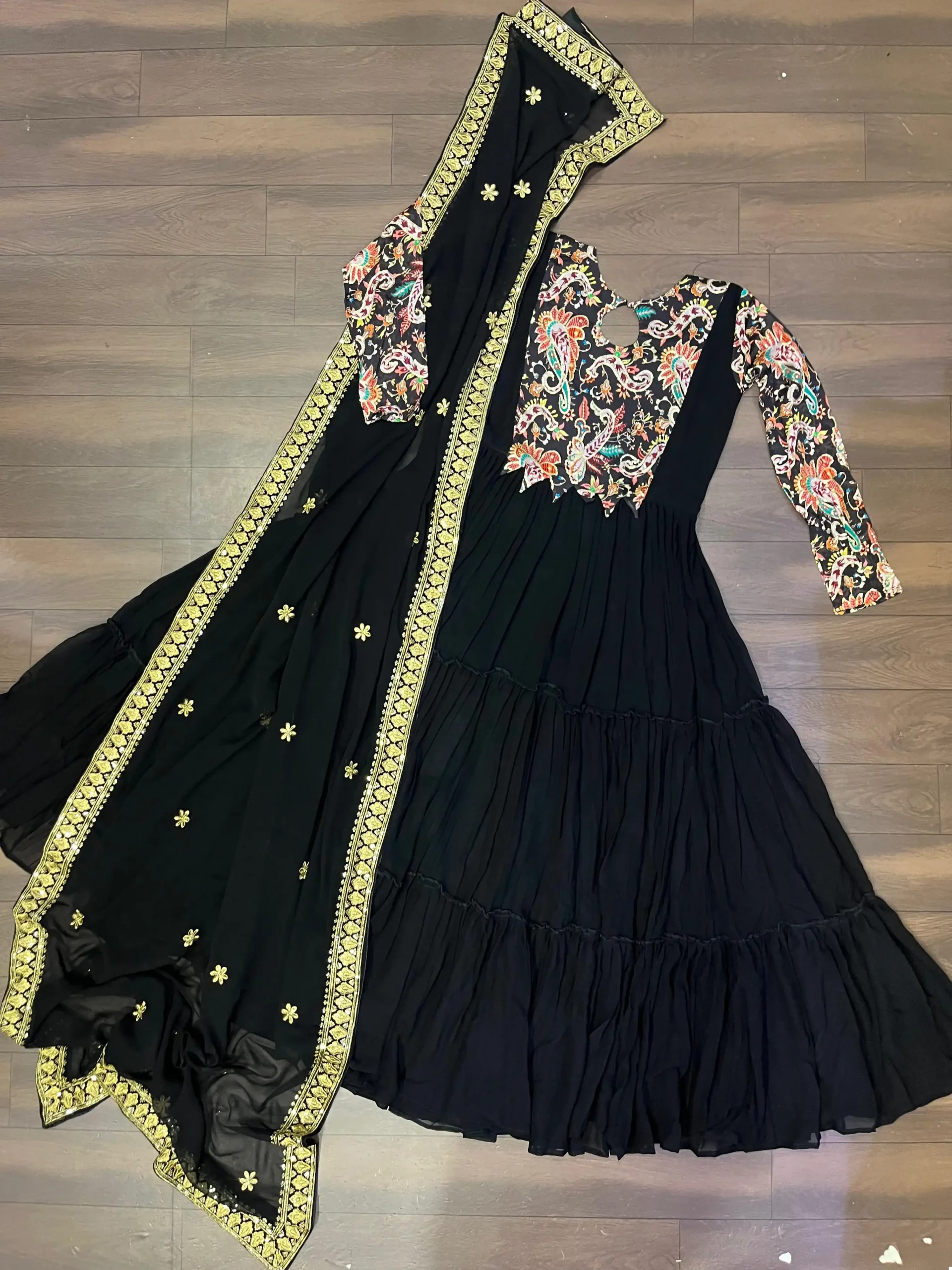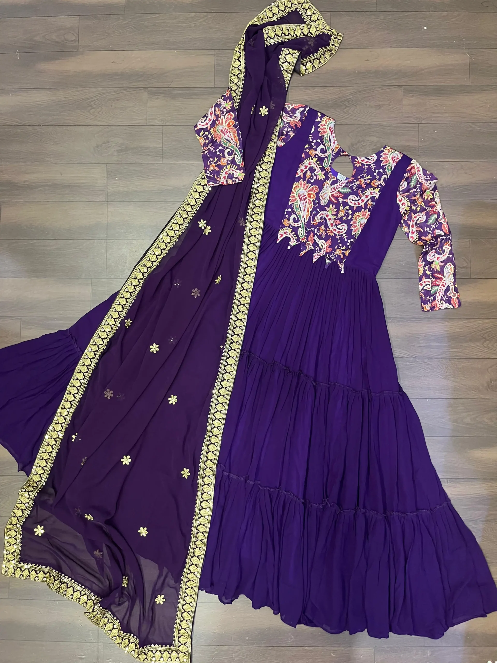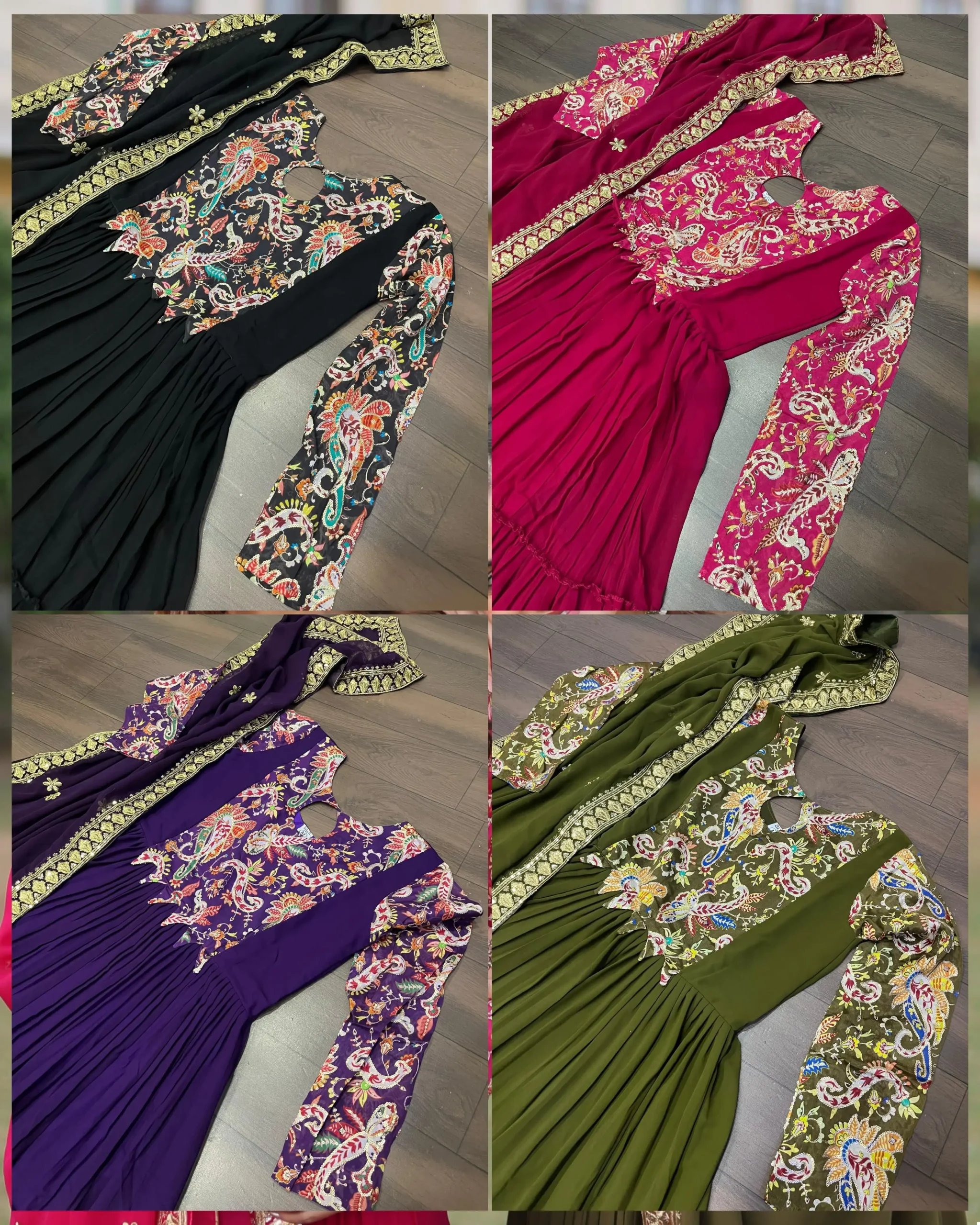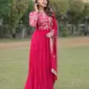 - Gown: Made of Faux Georgette with rich floral position print work, featuring a fancy round neck and cotton full inner.
