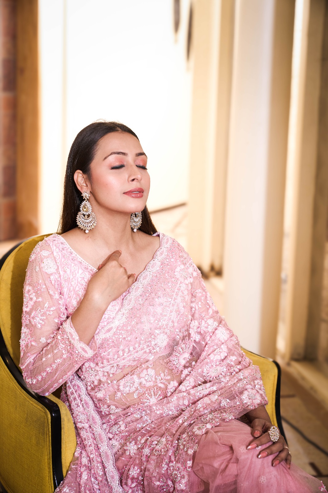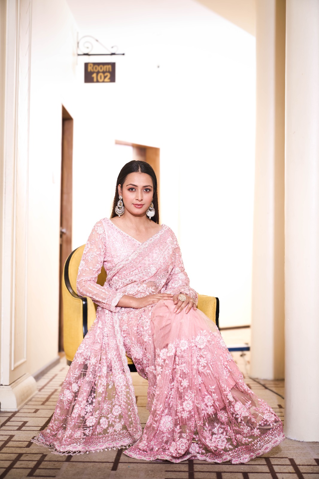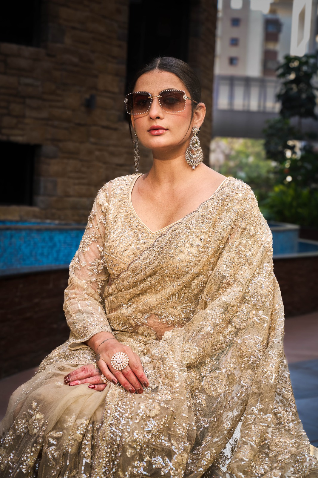 Saree: Premium Net with Sequence, Jarkan & Thread Handwork