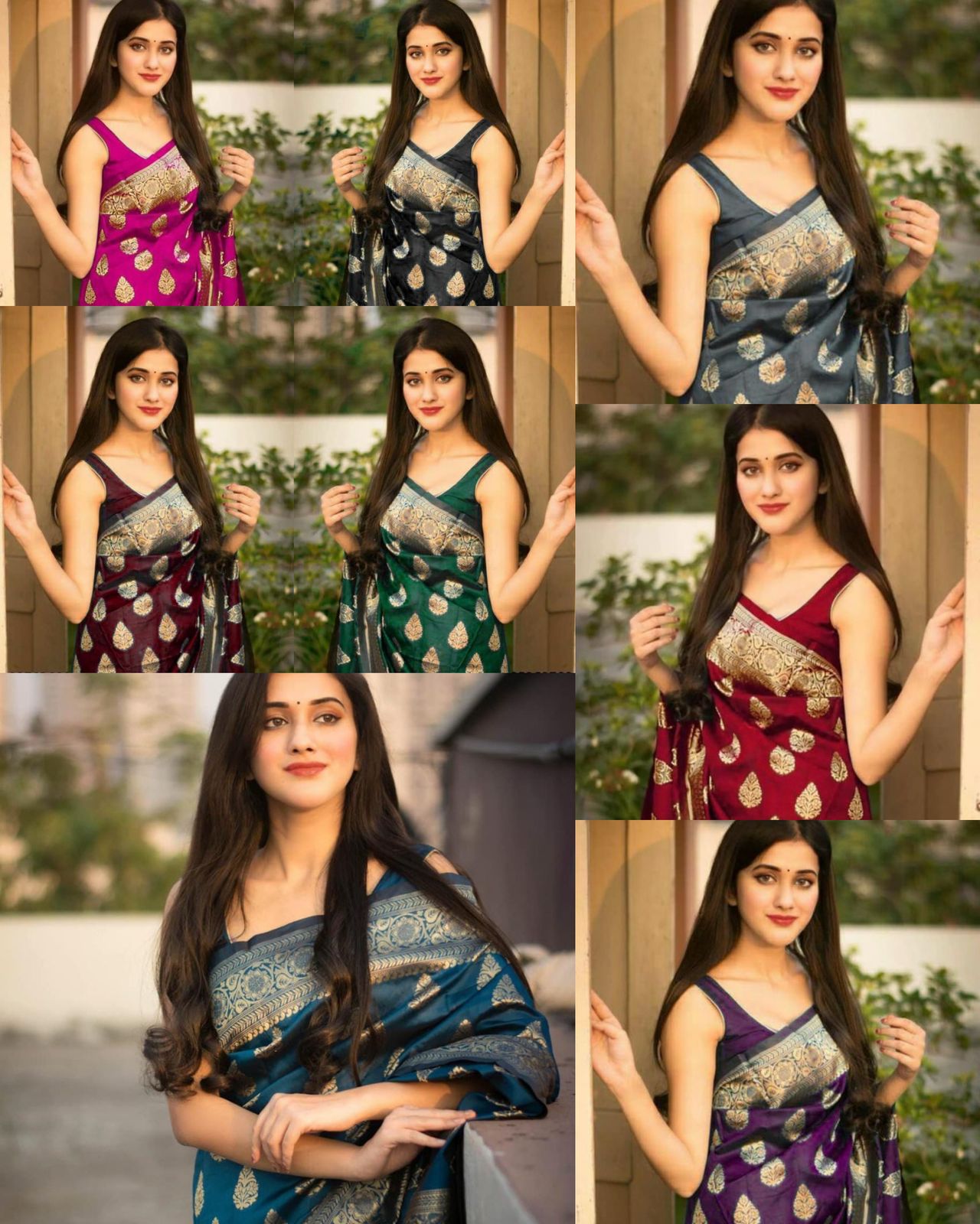 Introducing the exquisite KP-R Creation saree, crafted from premium soft lichi silk fabric. This saree features a stunning rich pallu and all-over jacquard work, making it an ideal choice for traditional and festive occasions. The running blouse with an exclusive jacquard border adds a touch of sophistication to your look.