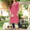 Top: Each kurti in this collection is a reflection of contemporary fashion. Crafted from high-quality imported fabric, these kurtis boast durability and a luxurious feel. The design focuses on a casual yet chic aesthetic, making them suitable for a variety of occasions, from everyday wear to informal gatherings.