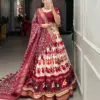 Tussar Silk Blouse: The ensemble includes a Tussar Silk blouse with foil printing, measuring 0.80 meters. It perfectly complements the lehenga, adding a touch of glamour to your attire.