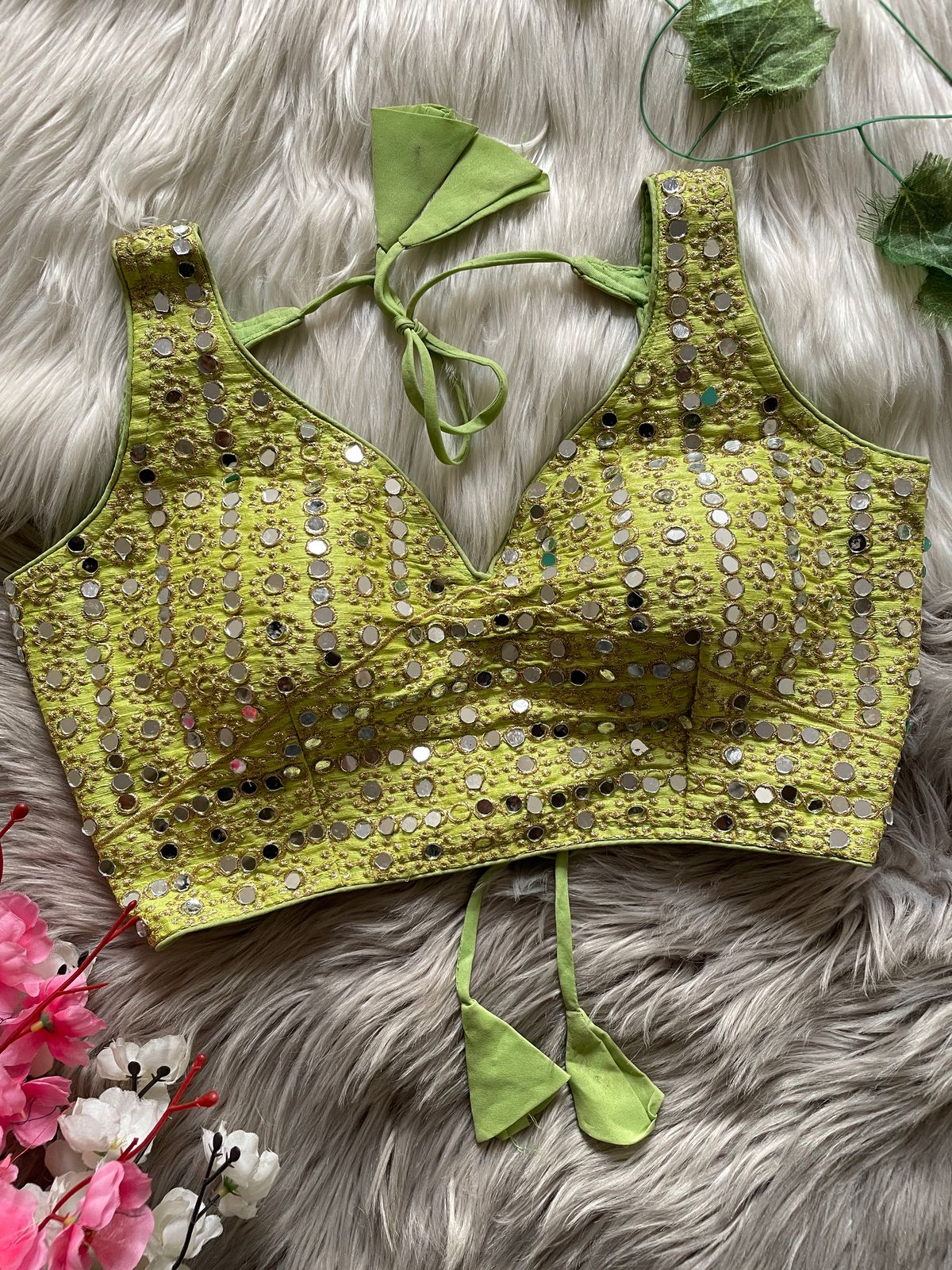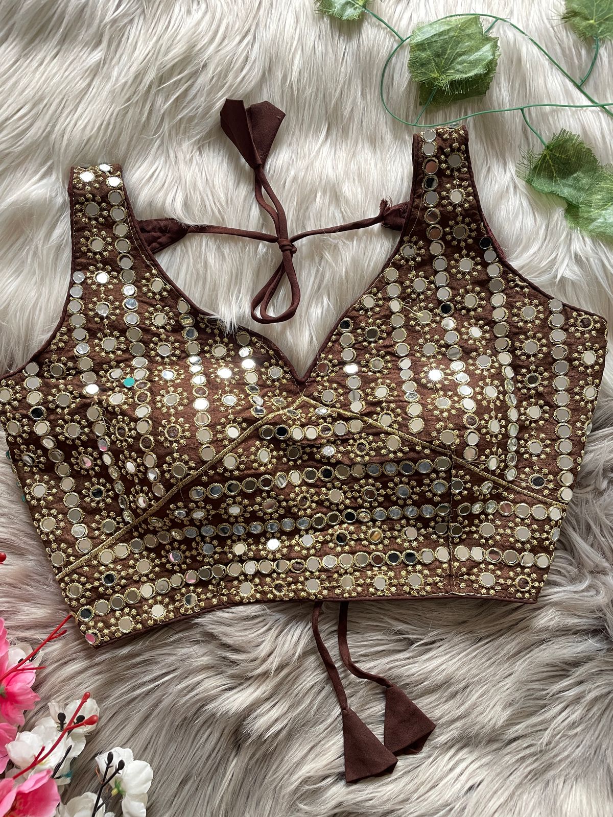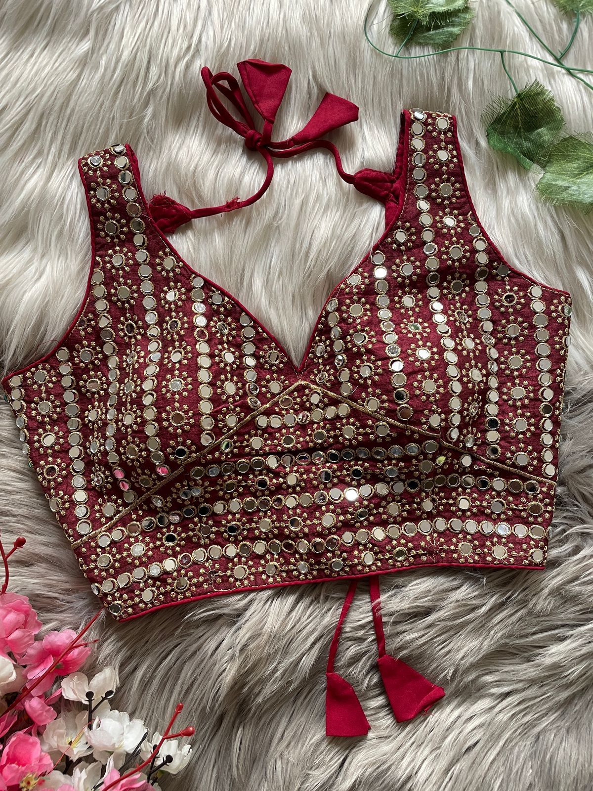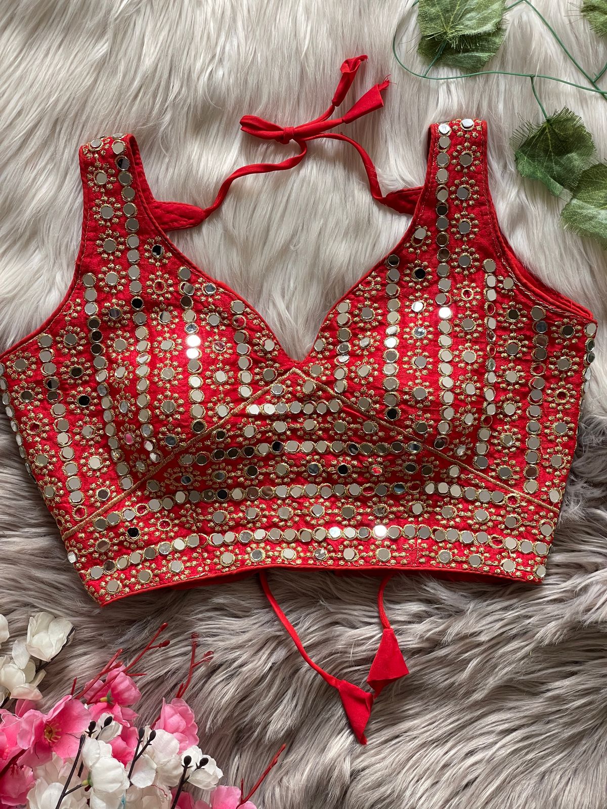 🔥 Design: Exquisite Bridal Design with Heavy Stitching, Soft Padded for Comfort, Back Open with Stylish SHAP Style & Handmade Hooks, Embellished with Heavy Real Mirror Work