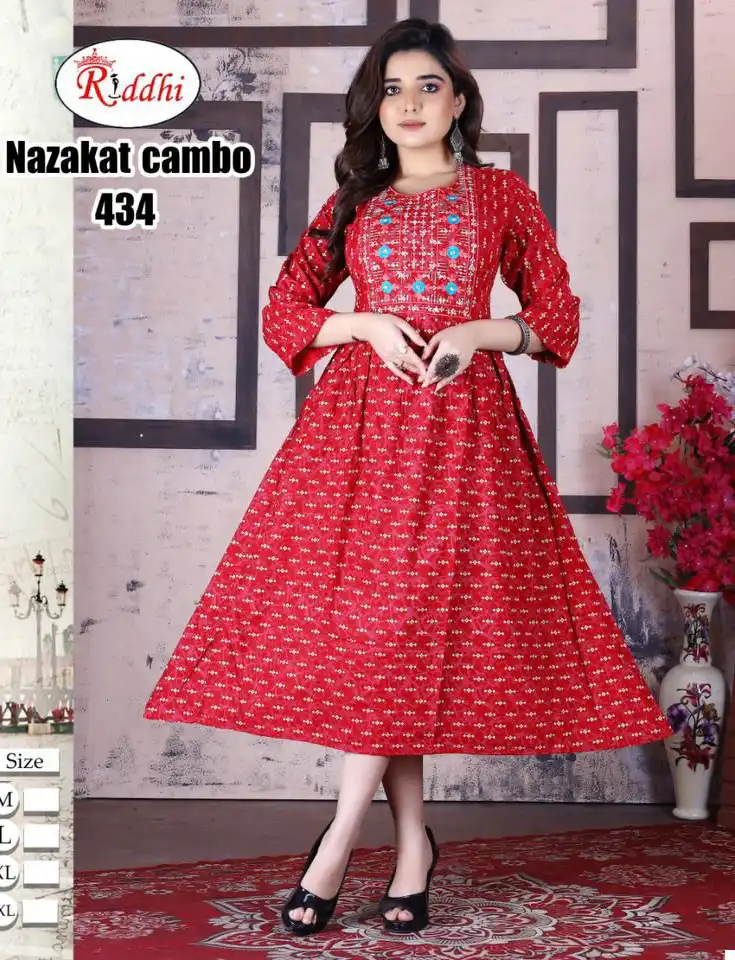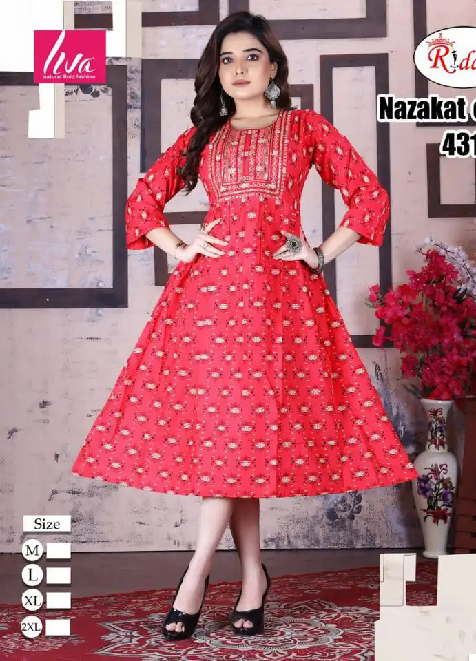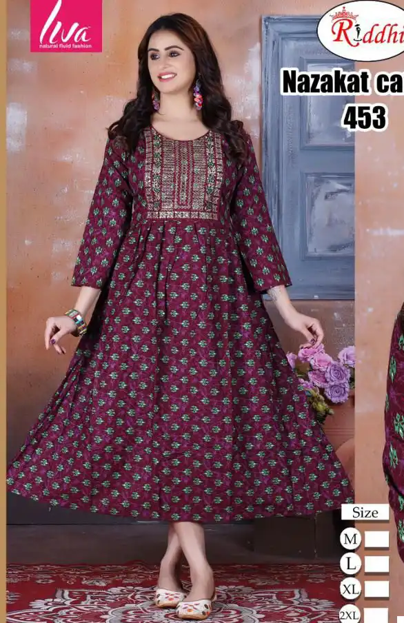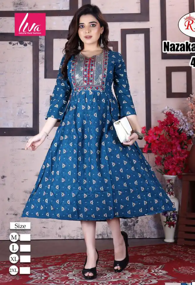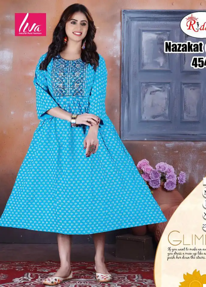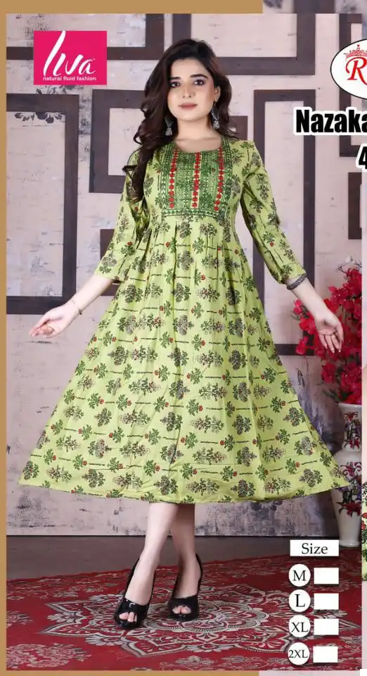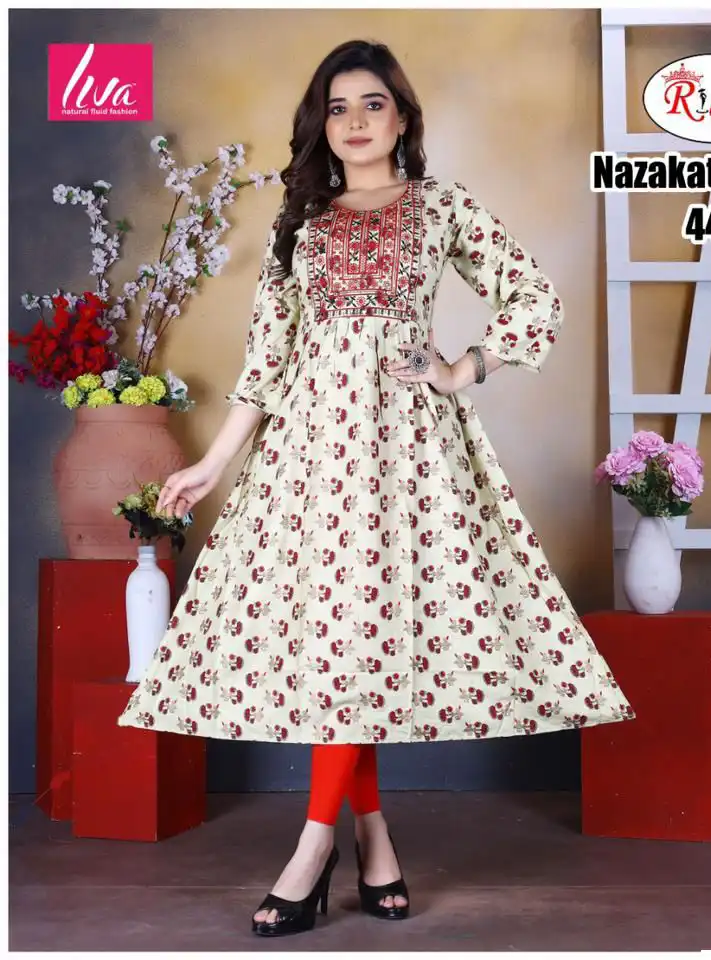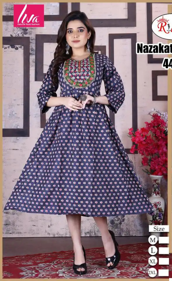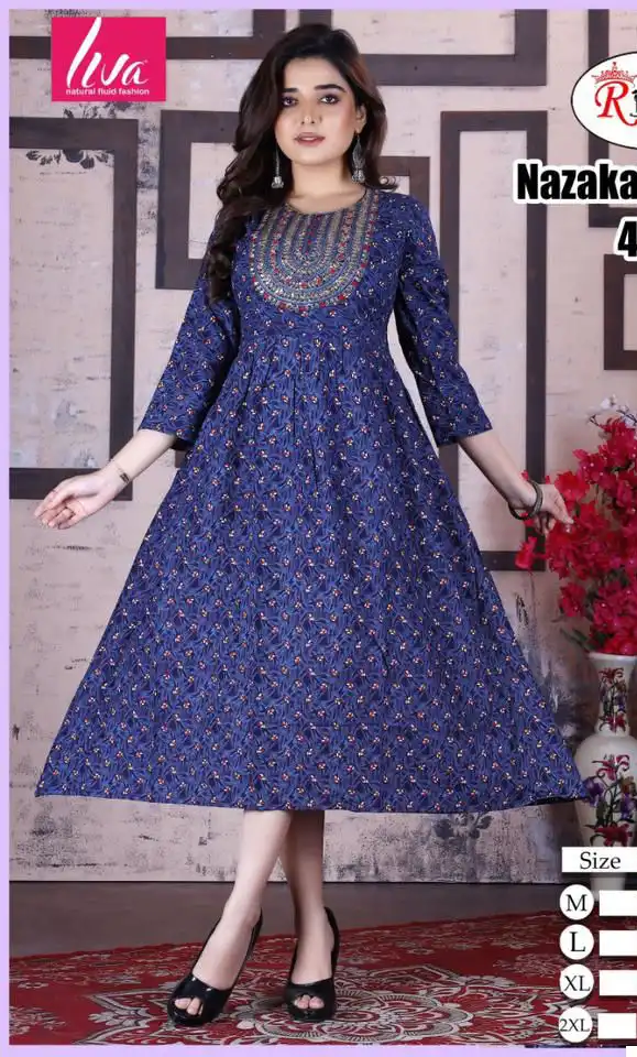 - Wholesale Pricing: Vardan Ethnic offers the Nazakat Rayon Print Long Kurtis Catalog at competitive wholesale prices, providing retailers and businesses with an attractive option to enhance their ethnic wear collections with trendy and comfortable ensembles.