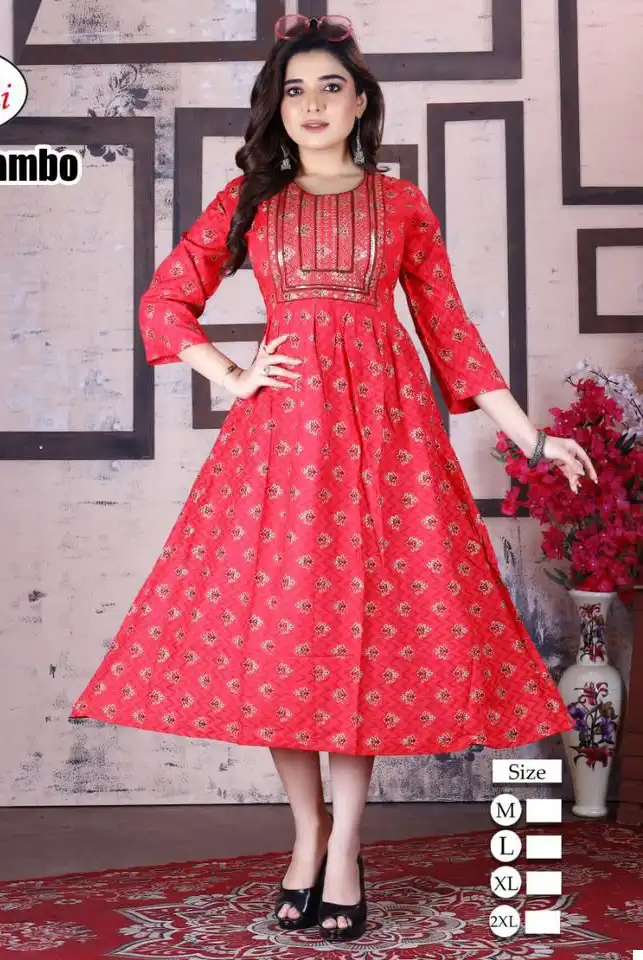 - Rayon Comfort: Crafted from premium rayon fabric, these long kurtis offer a luxurious feel, excellent drapability, and unmatched comfort. The breathable nature of rayon makes these kurtis ideal for everyday wear, ensuring the wearer feels both stylish and at ease.