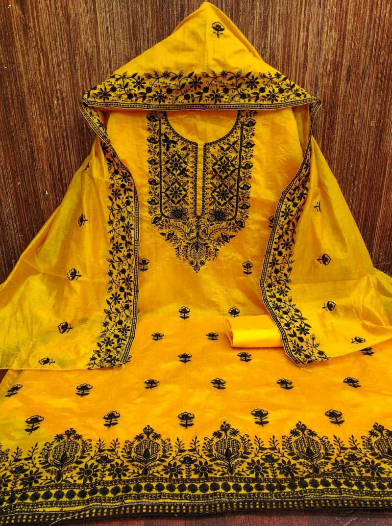 ✓Embroidered Chanderi Cotton Top ✓Santoon Bottom & Inner ✓Chanderi Dupatta ✓₹518 + GST