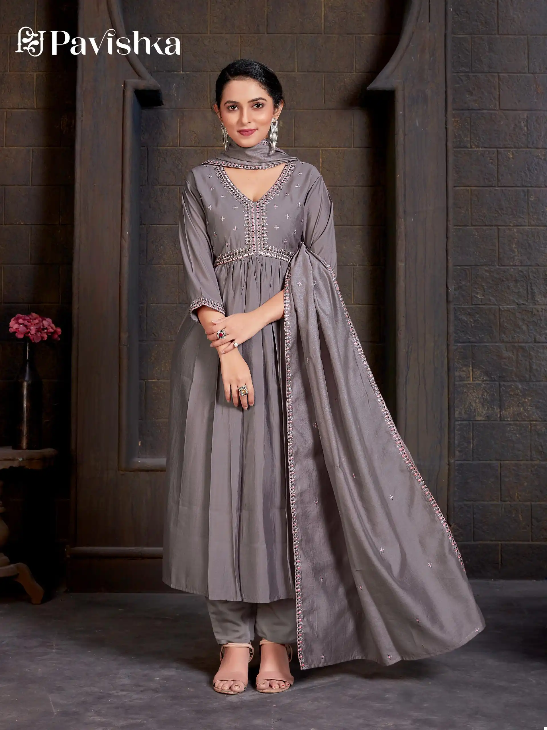 - Dupatta: Chanderi – The scarf or dupatta accompanying the outfit is made of Chanderi fabric.