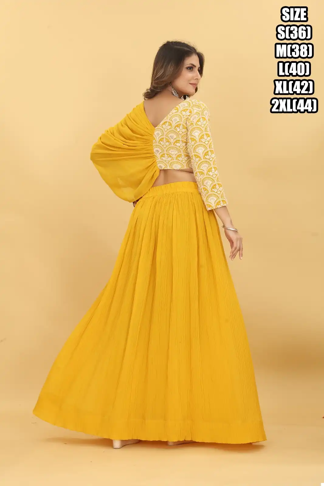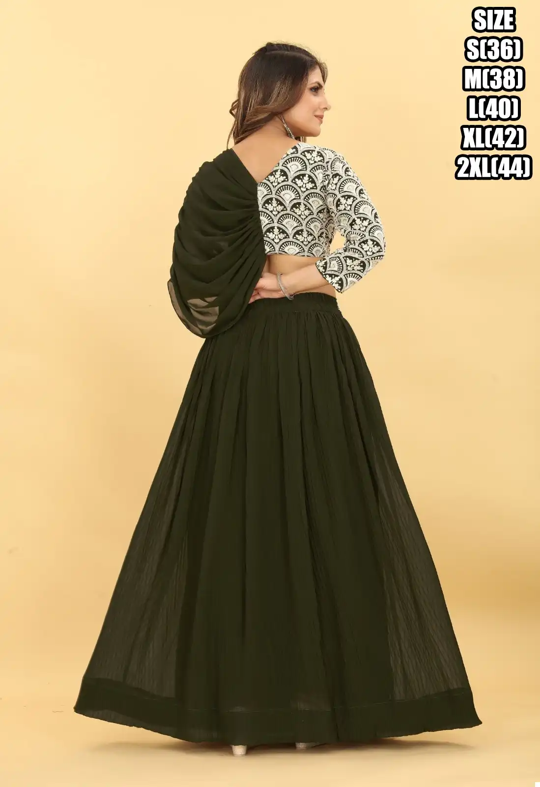 The use of Heavy Georgette suggests that the Lehenga is designed to be substantial and luxurious, which is often preferred in traditional Indian garments for its elegant drape and durability. The ‘Pick & Choose’ option indicates a customizable selection, allowing for personal preference in color.