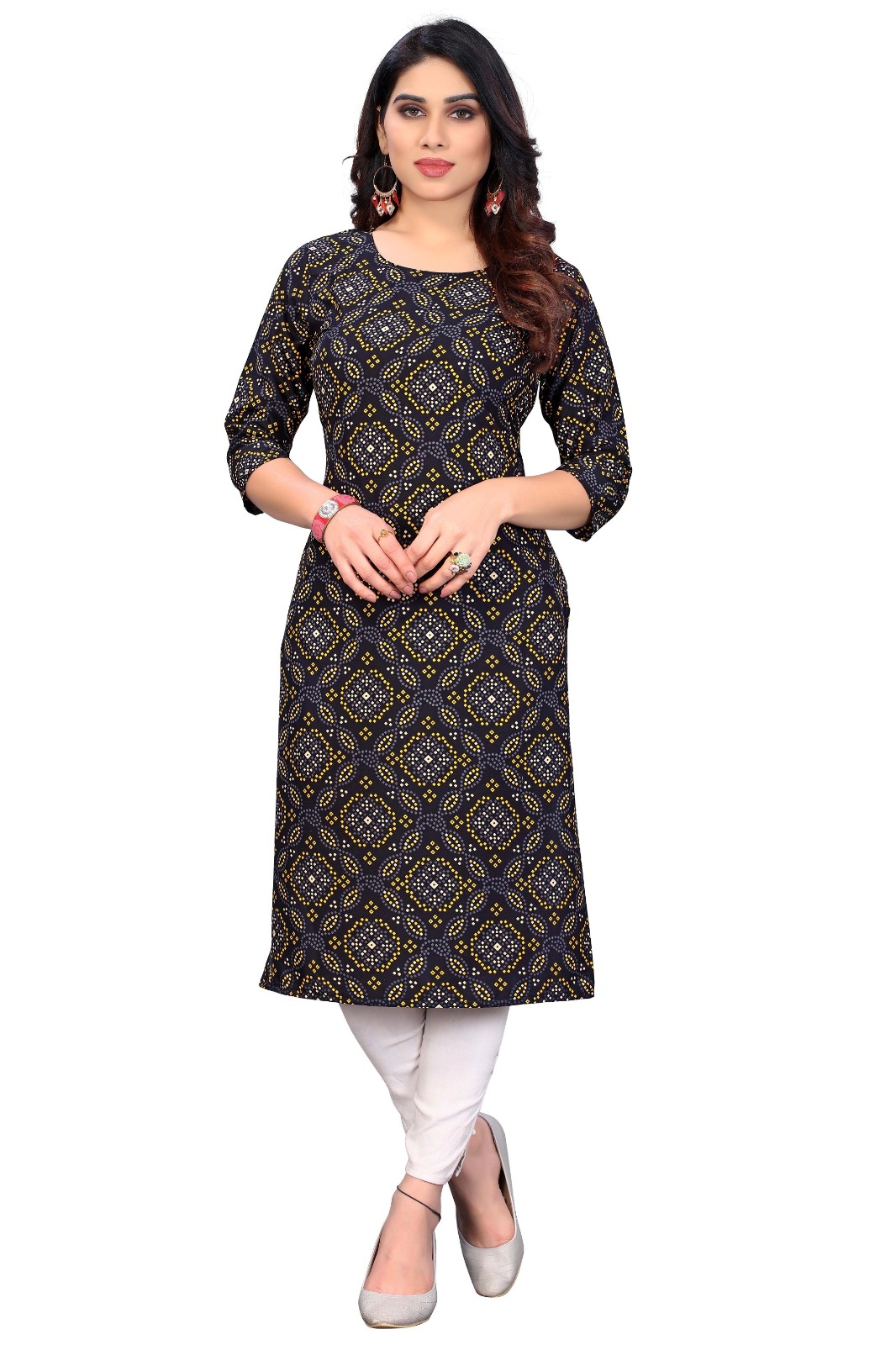 - Bandhani Prints: Inspired by the rich heritage of Bandhani artistry, our Crepe Bandhani Top features exquisite printed designs that capture the essence of traditional Indian craftsmanship. The intricate patterns add a touch of cultural charm to your ensemble, making it perfect for festive occasions or cultural events.