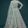 - Blouse: Net Dori & Zari Embroidery Work Round Neck – The blouse accompanying the lehenga is made of net fabric with Dori and Zari embroidery work, featuring a round neck design.